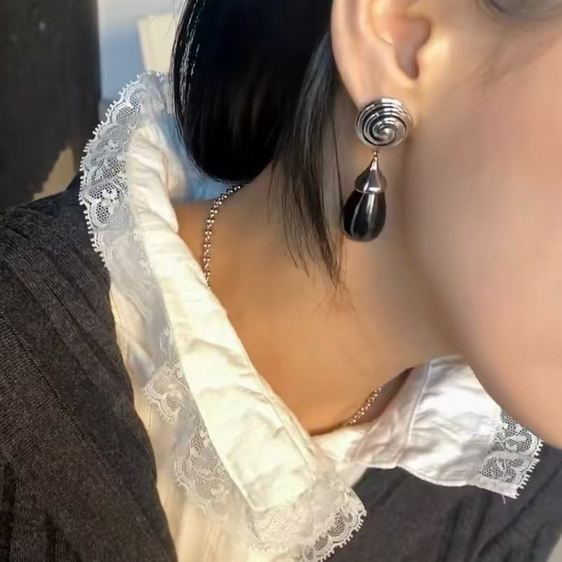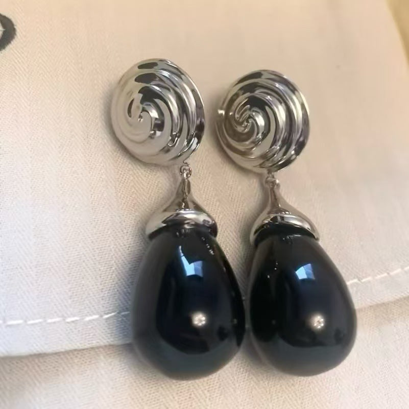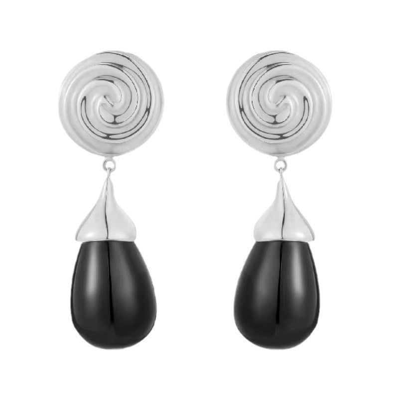 Vortex Dangling Beads Obsidian Copper Plated Earrings