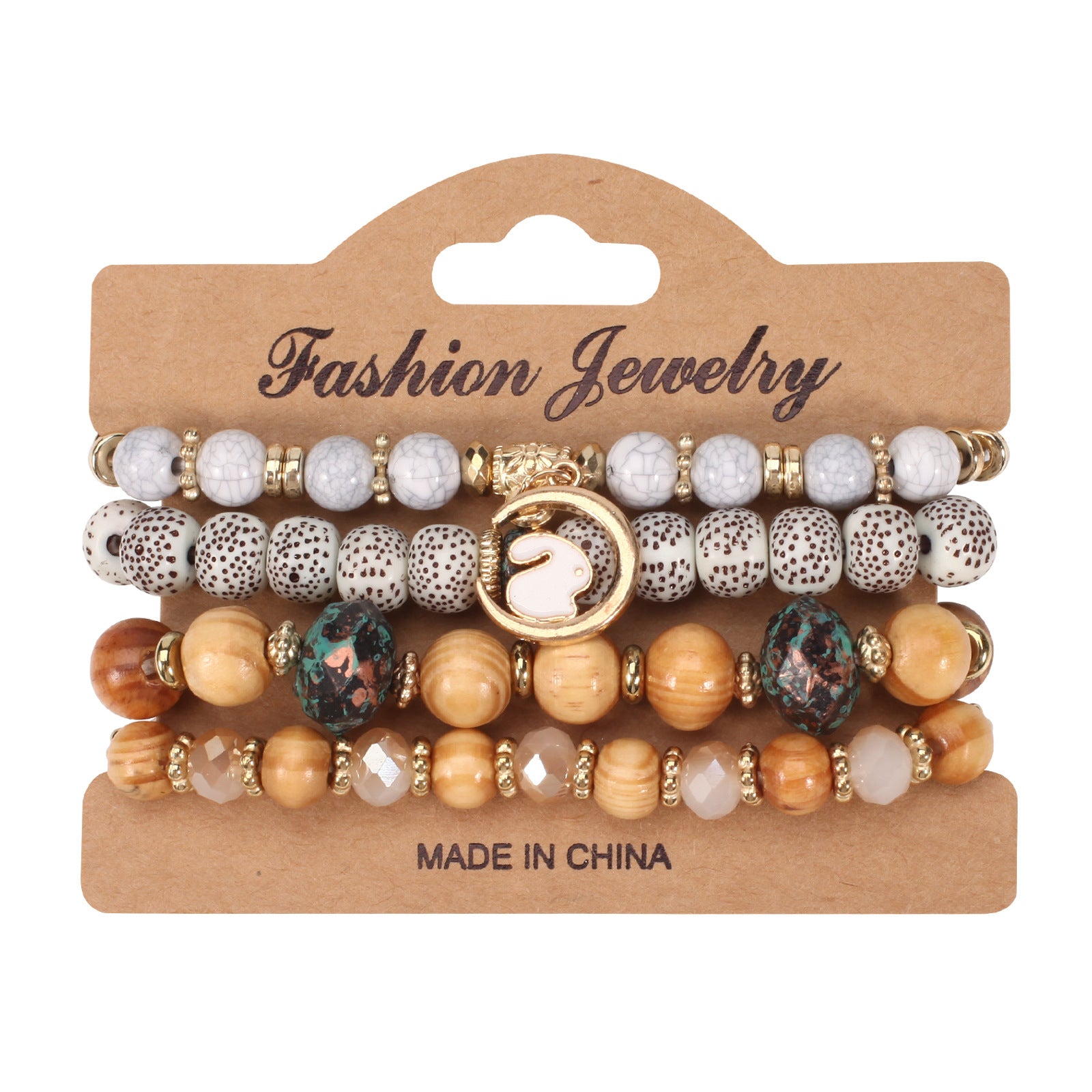 Women's Bohemian Rabbit Zodiac Wooden Bead Beaded Bracelets