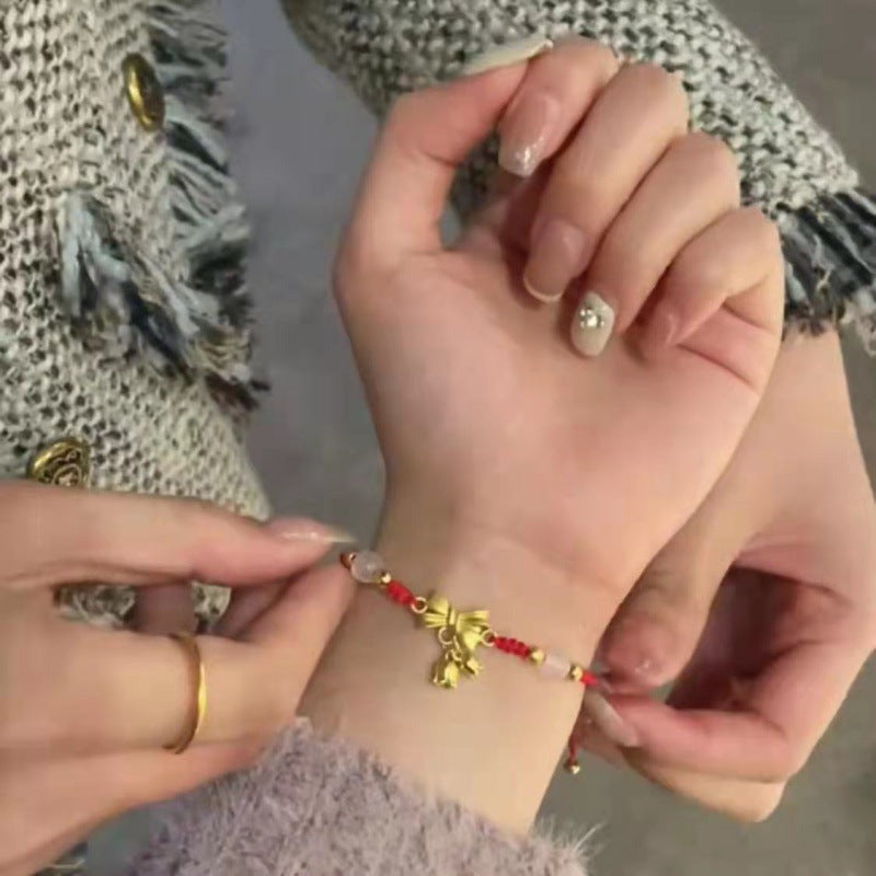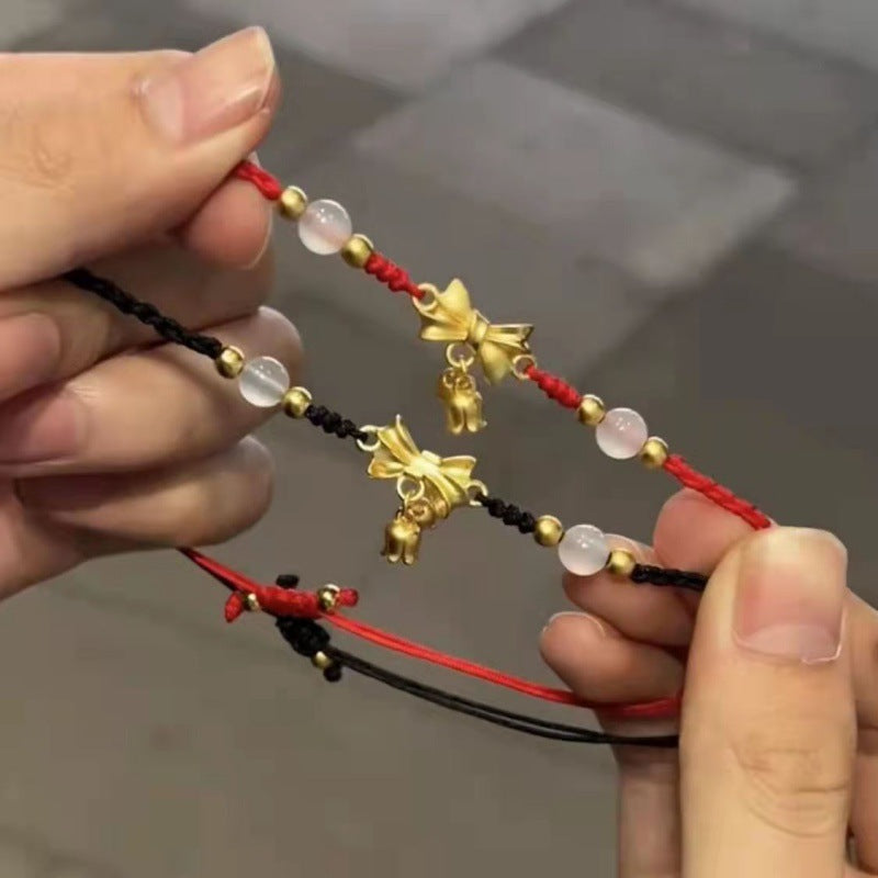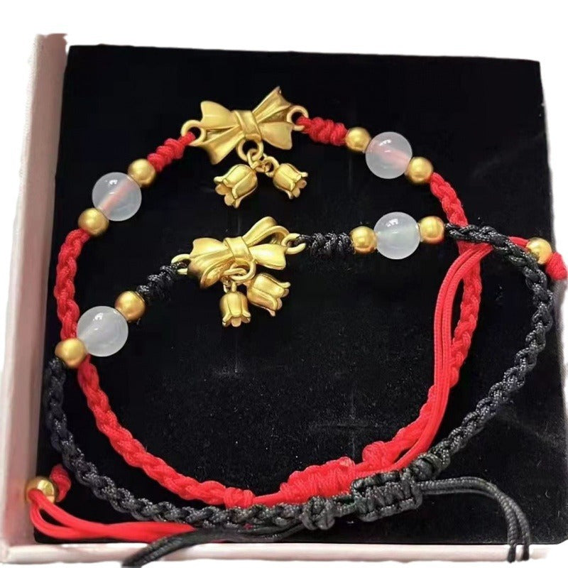 Women's Bow Lily Woven Safety Red Rope Bracelets
