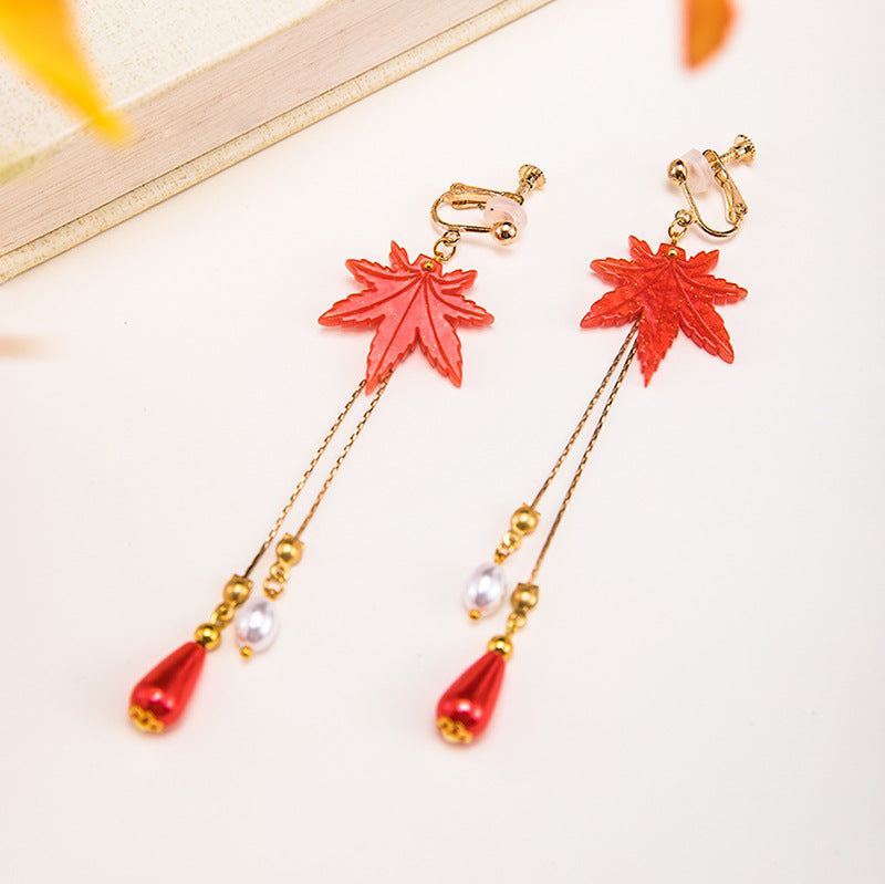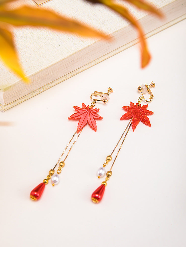 Women's Chinese Style Antique Ear Clip Red Earrings