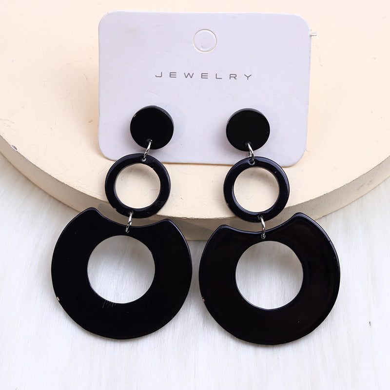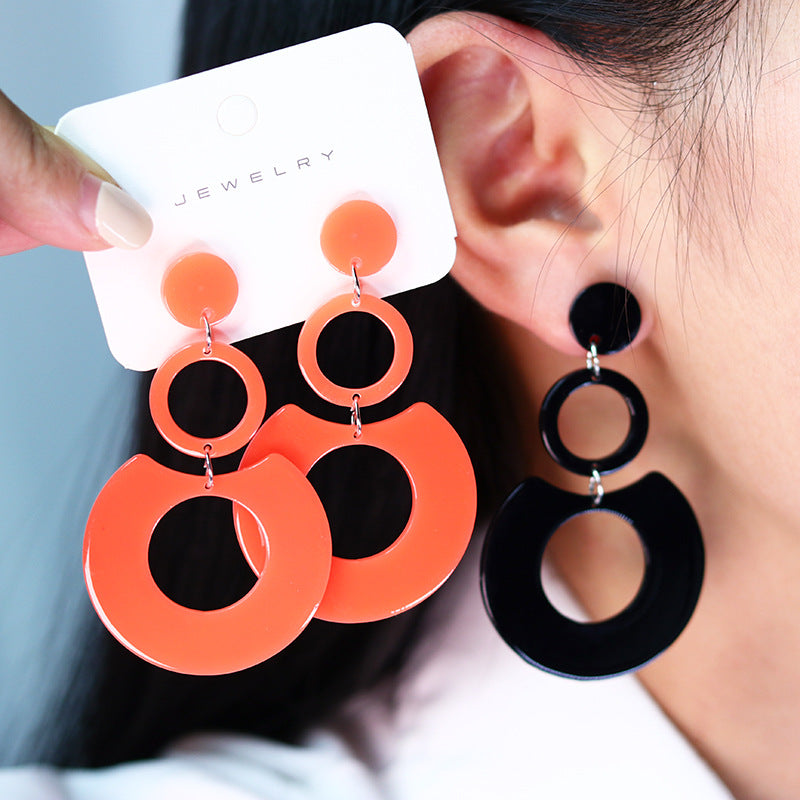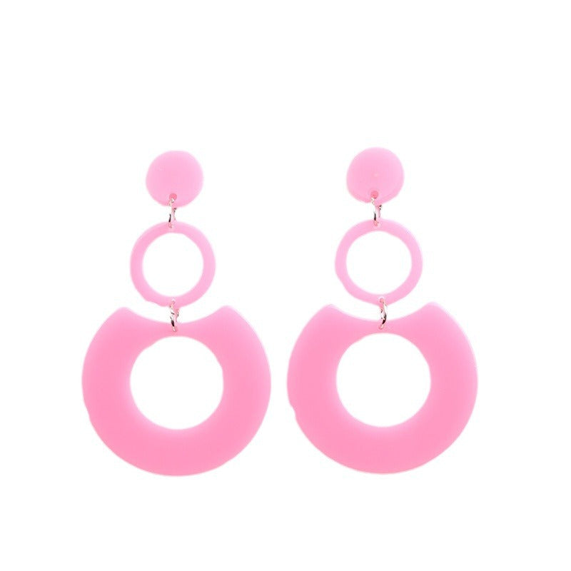 Women's Color Round Stitching Hollow Acrylic Ear Rings