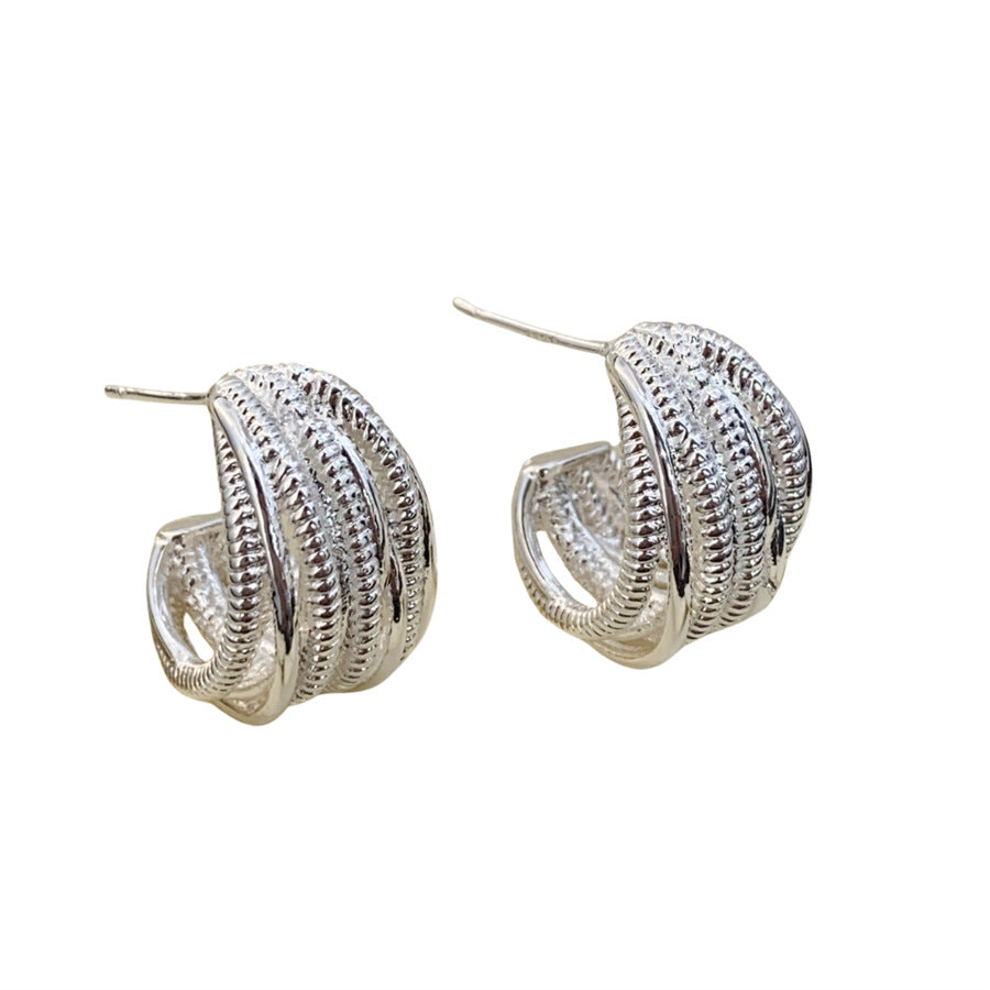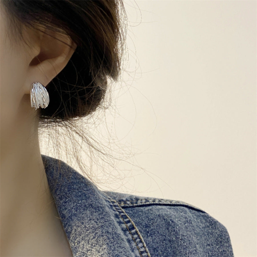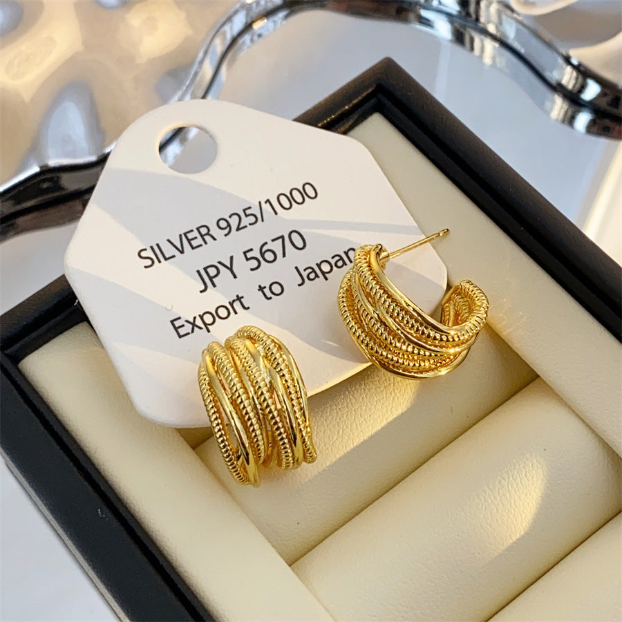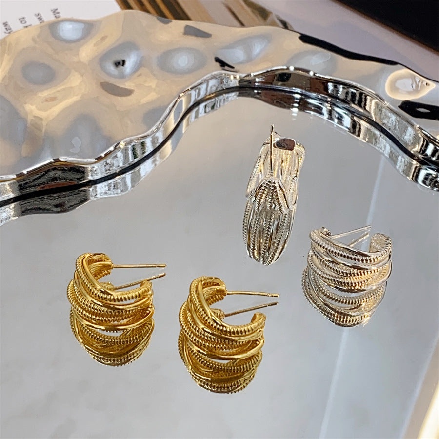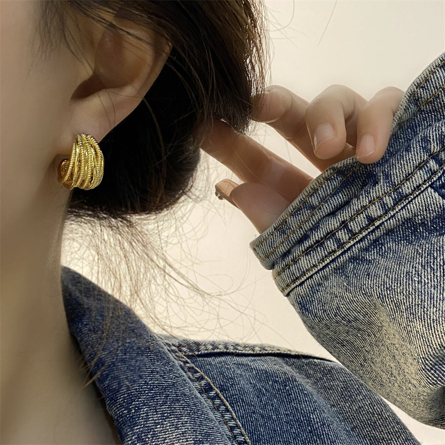 Women's Copper Plated Real Gold Metal Winding Wire Frosty Earrings