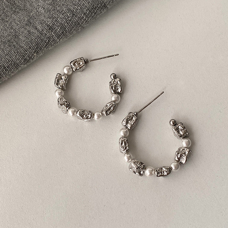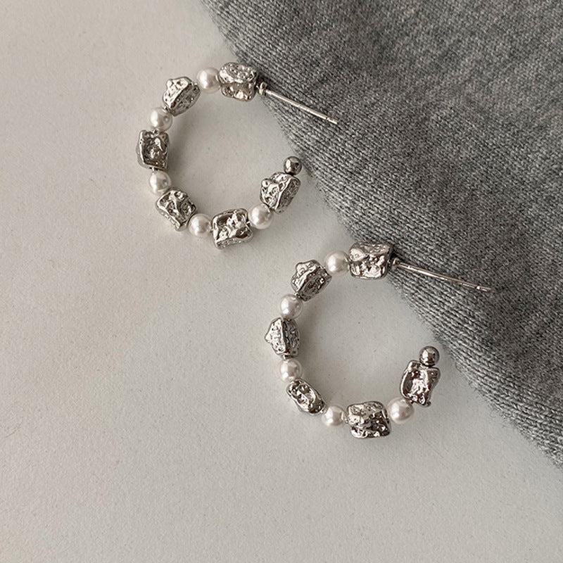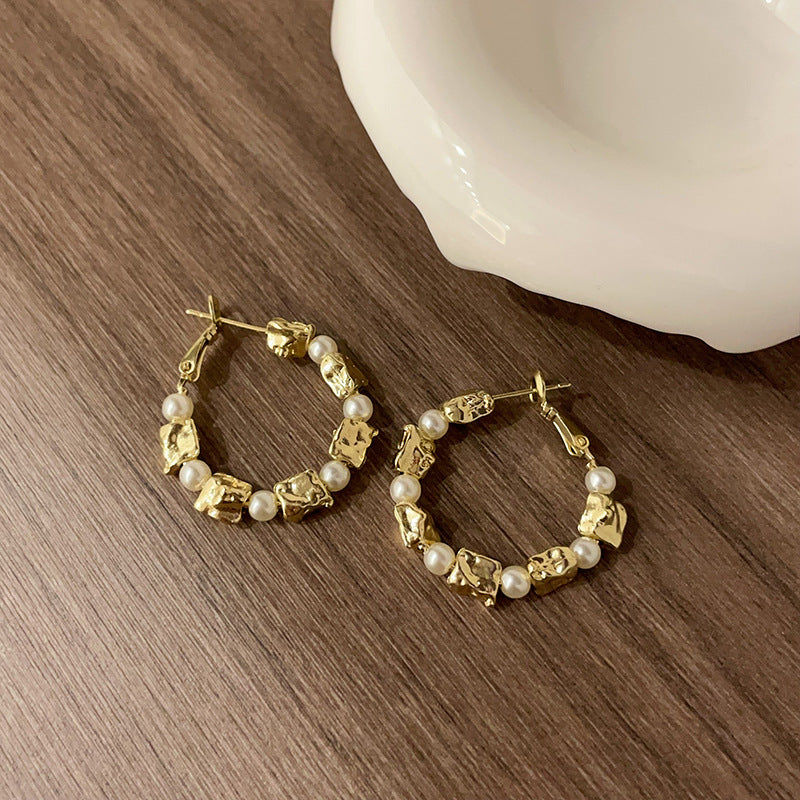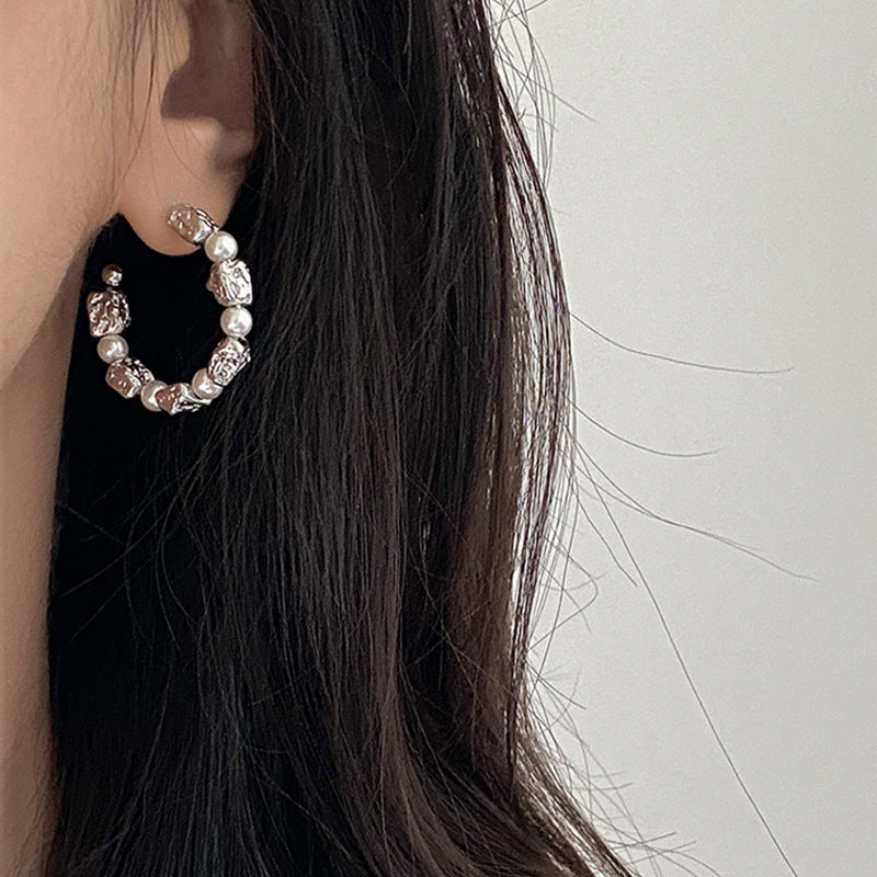 Women's Design Irregular Metal Pearl For Light Luxury Advanced Elegant Earrings