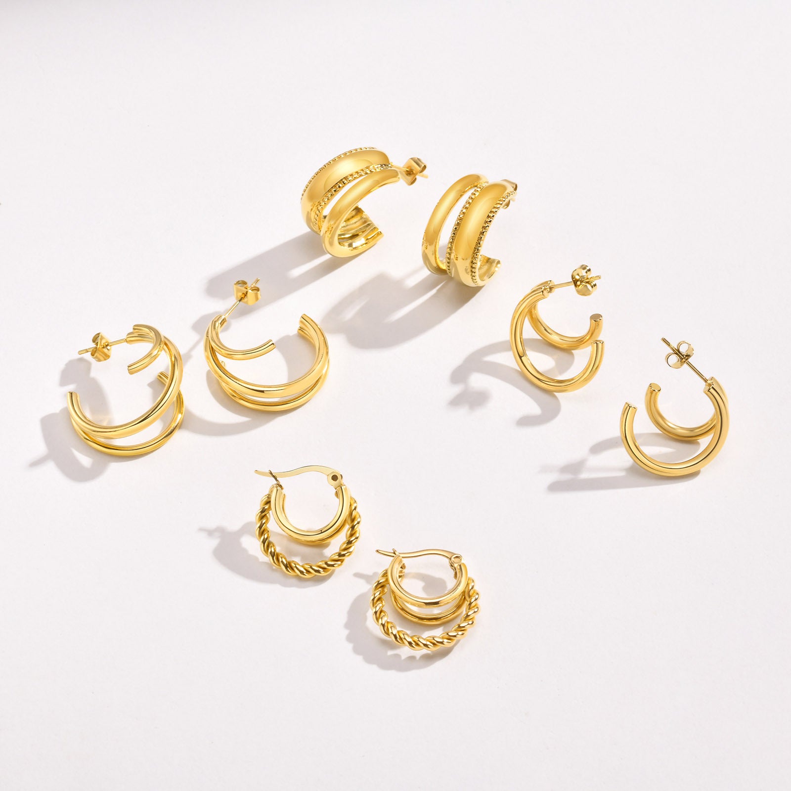 Women's Double Stainless Steel Three Tube Jewelry Earrings