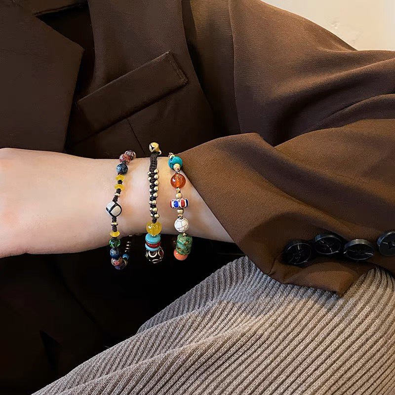 Women's Elephant For Couple Girlfriends Chinese Retro Natural Stone Woven Bracelets
