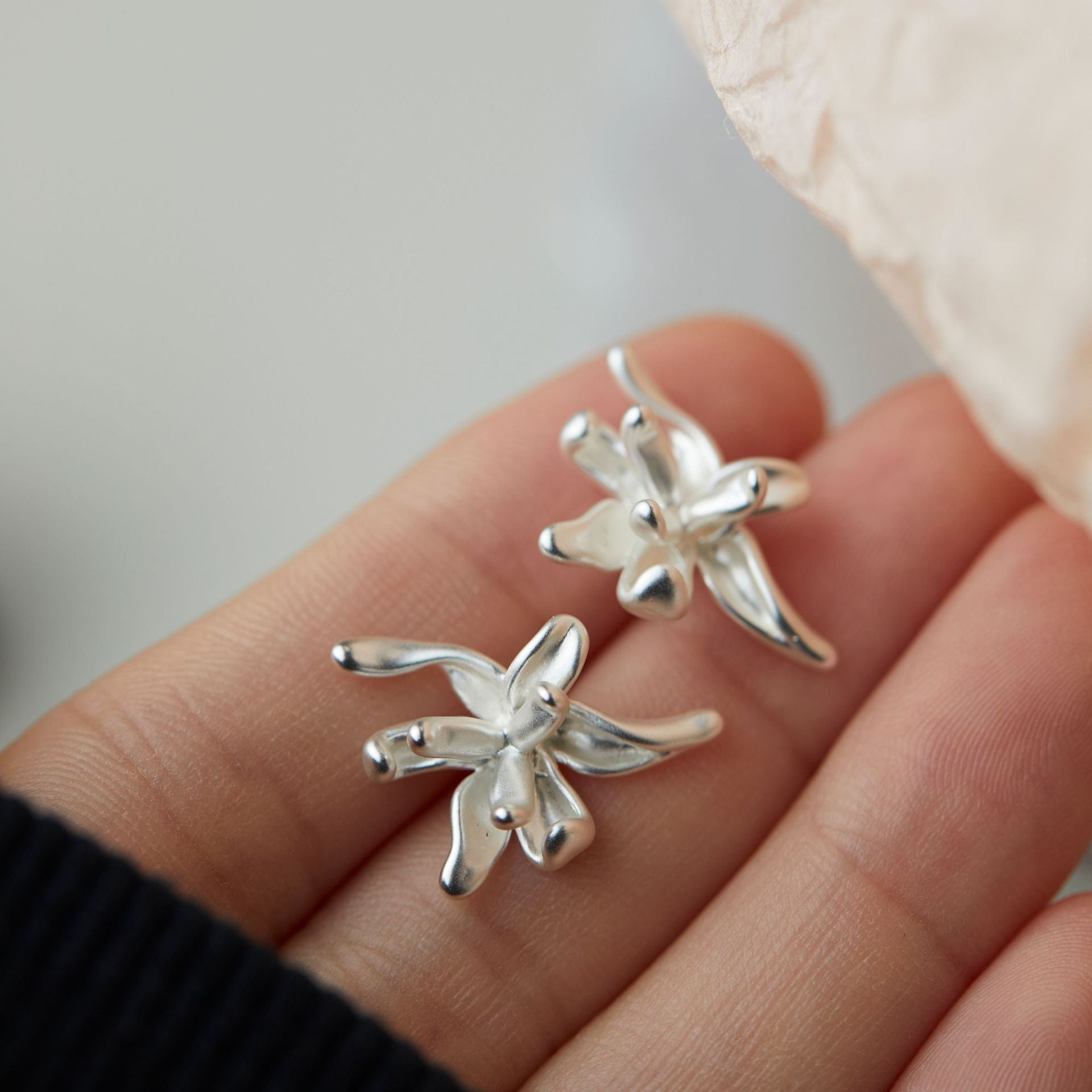 Women's Fairy French Retro Metal Matte Flower High-grade Earrings