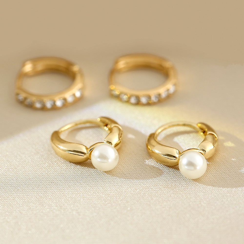 Women's Fashion Inlaid Zircon Pearl Geometric Light Earrings