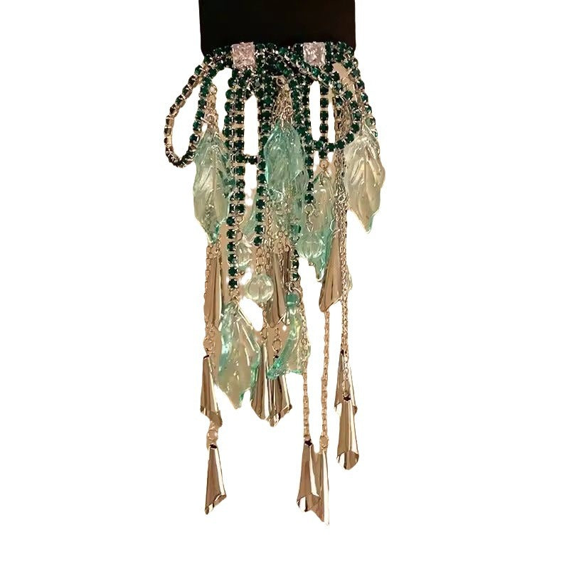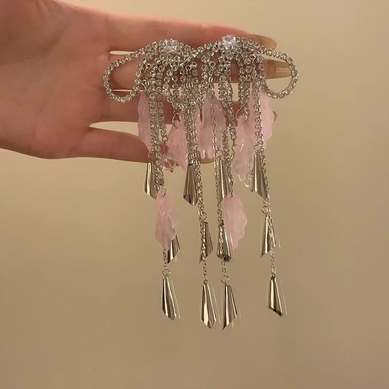 Women's Fashion Rhinestone Chain Tassel Exaggerated Design Earrings