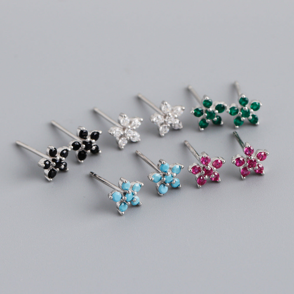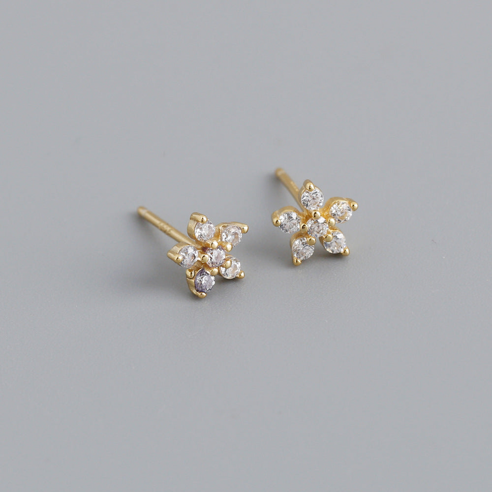 Women's Flower Sterling Sier Sweet Small For Earrings