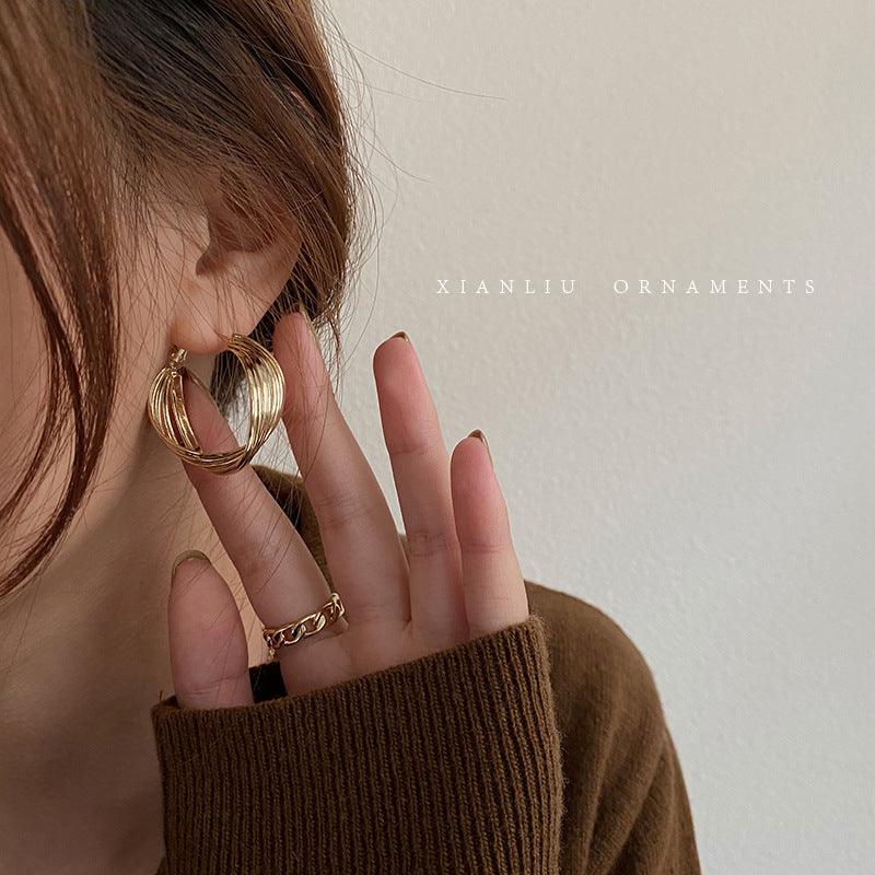 Women's Frosty Style Vintage Metal Circles High-grade Earrings