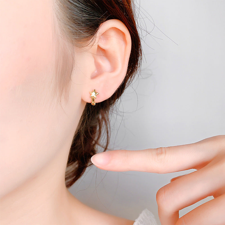 Women's Glossy Pentagram Ear Clip Geometric Stars Simple Wild Elegant Earrings