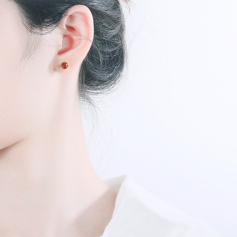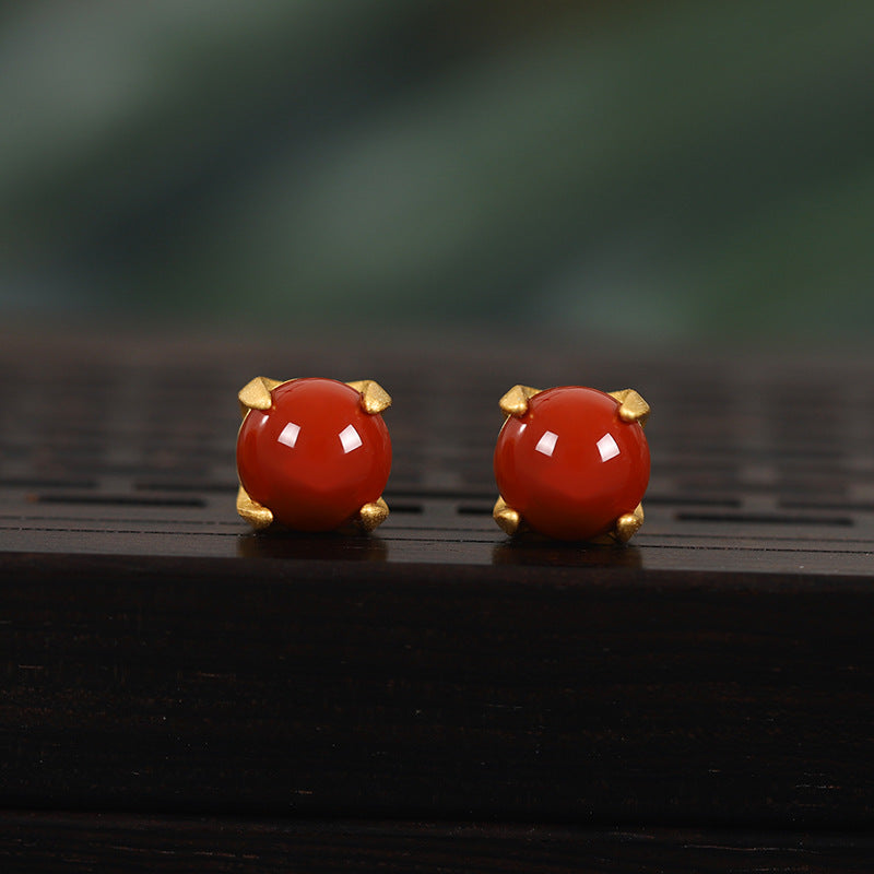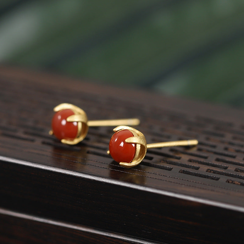 Women's Gold-plated Gem Southern Red Agate Simple Chinese Earrings