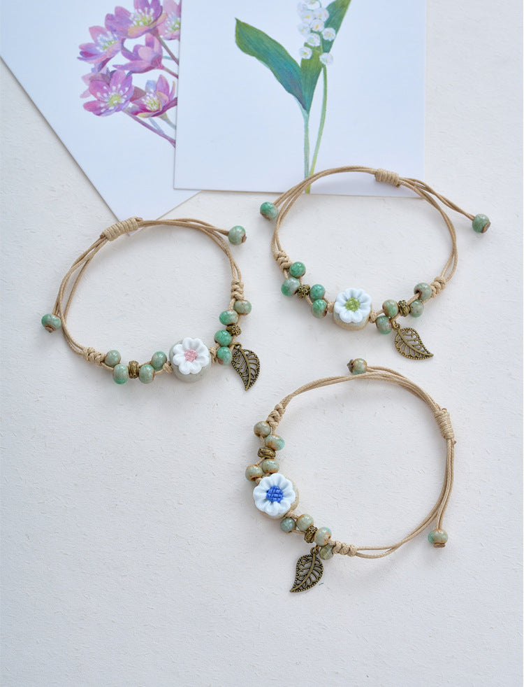 Women's Hand Weaving Mori Style Fresh Ceramic Vintage Flower Bracelets