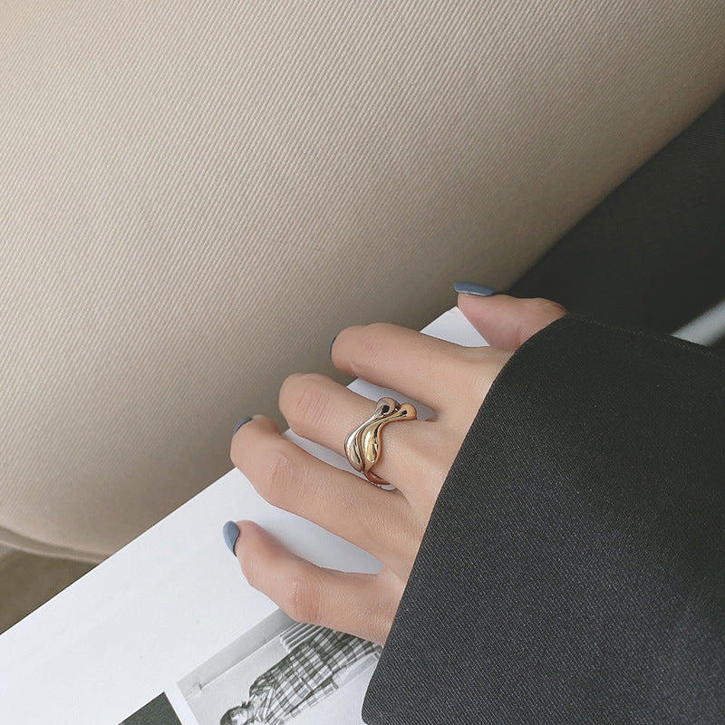 Women's Irregular Wave Pattern Smooth Opening Gold Rings