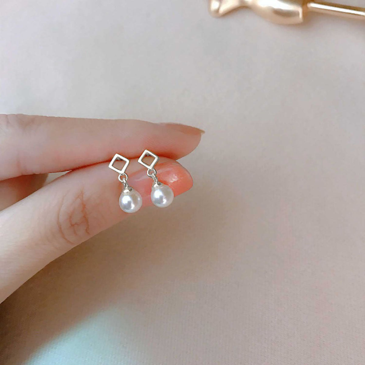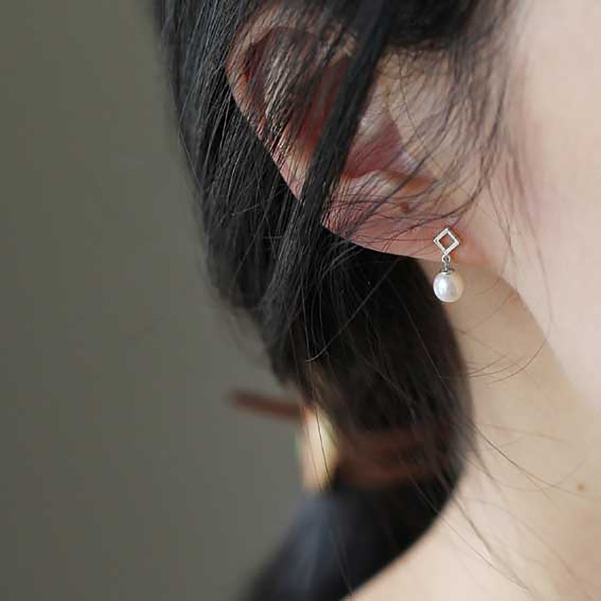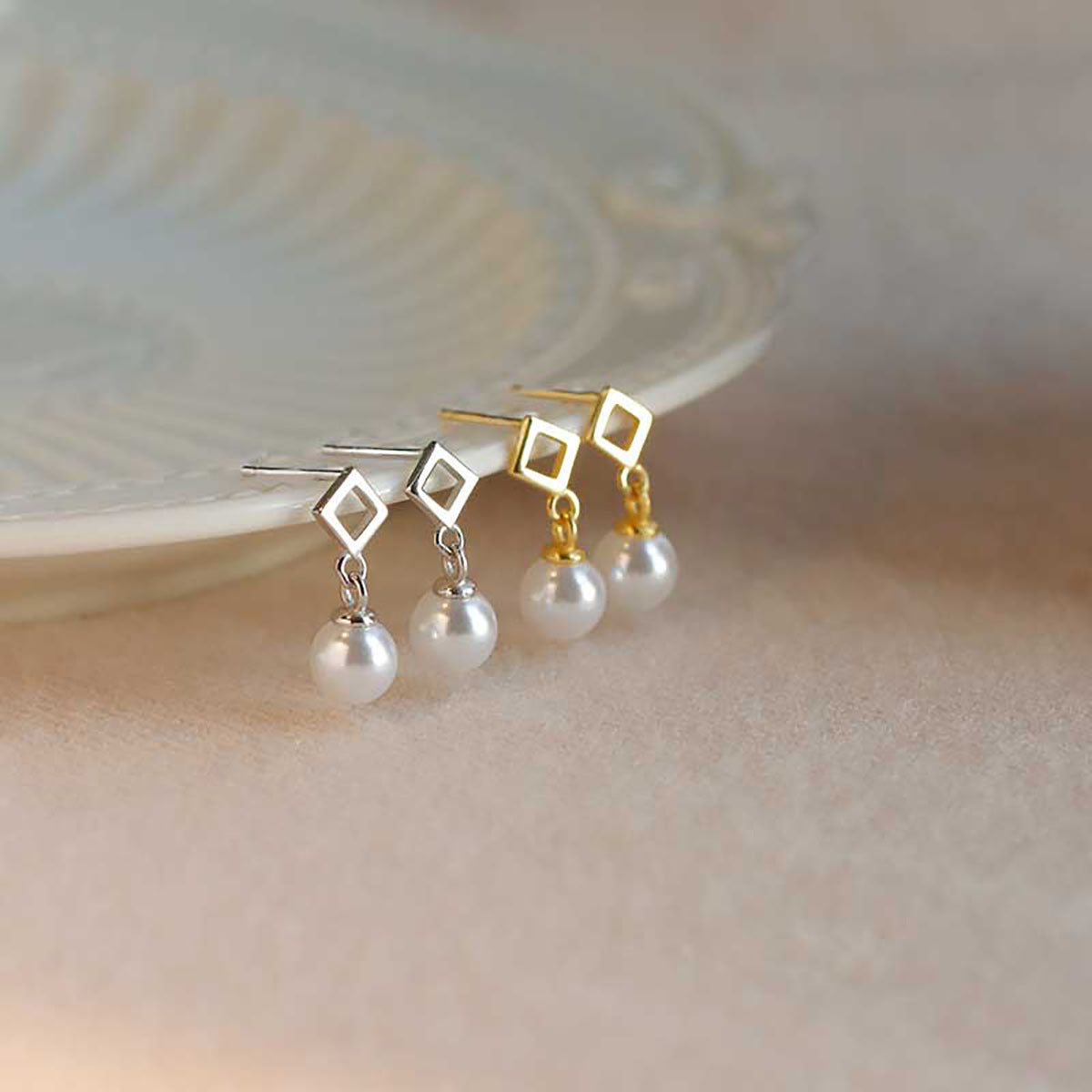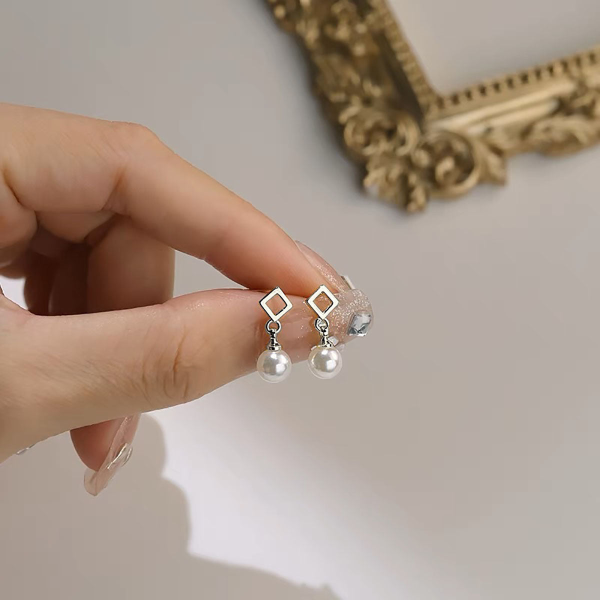 Women's Korean Pearl Rhombus Fashion Exquisite Design Sense Sier Earrings