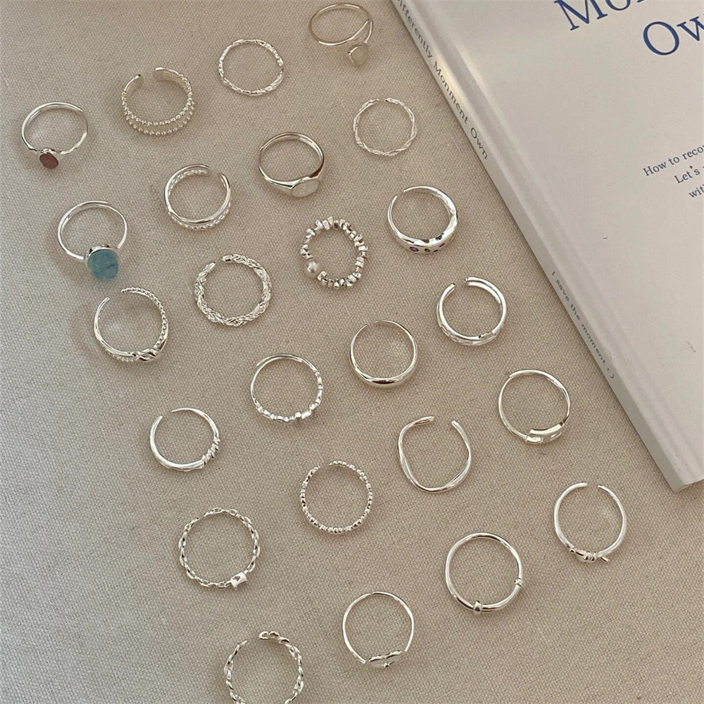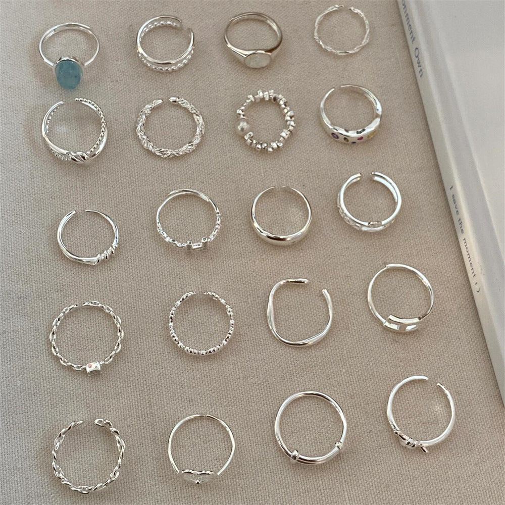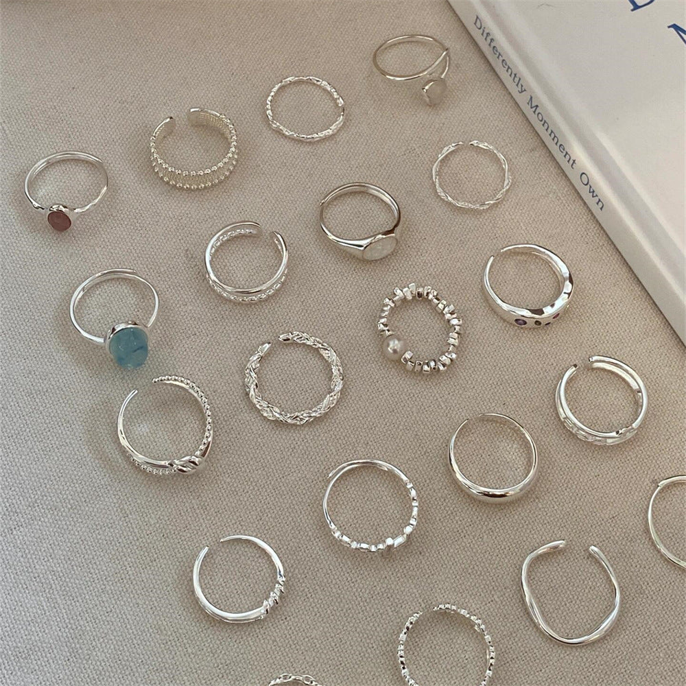 Women's Korean Style Simple Gemstone Sterling Sier Rings