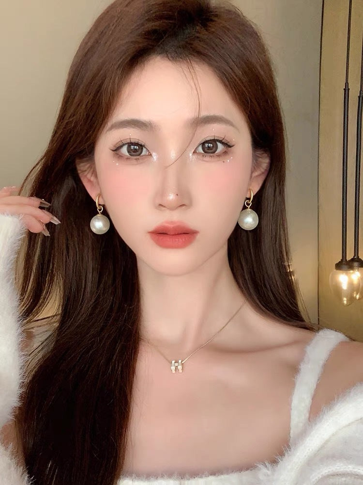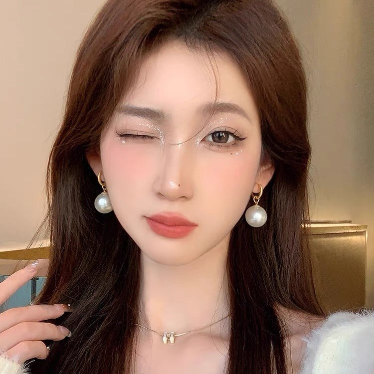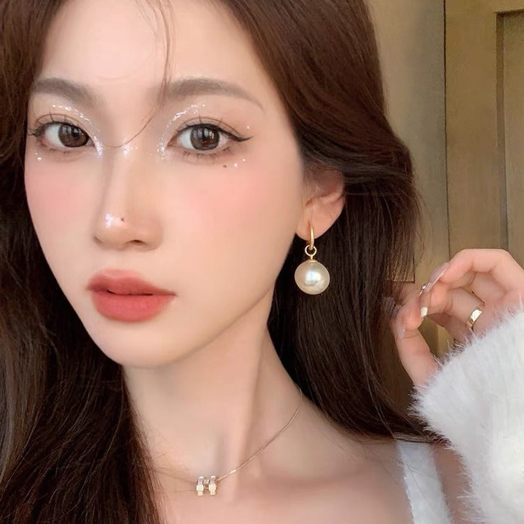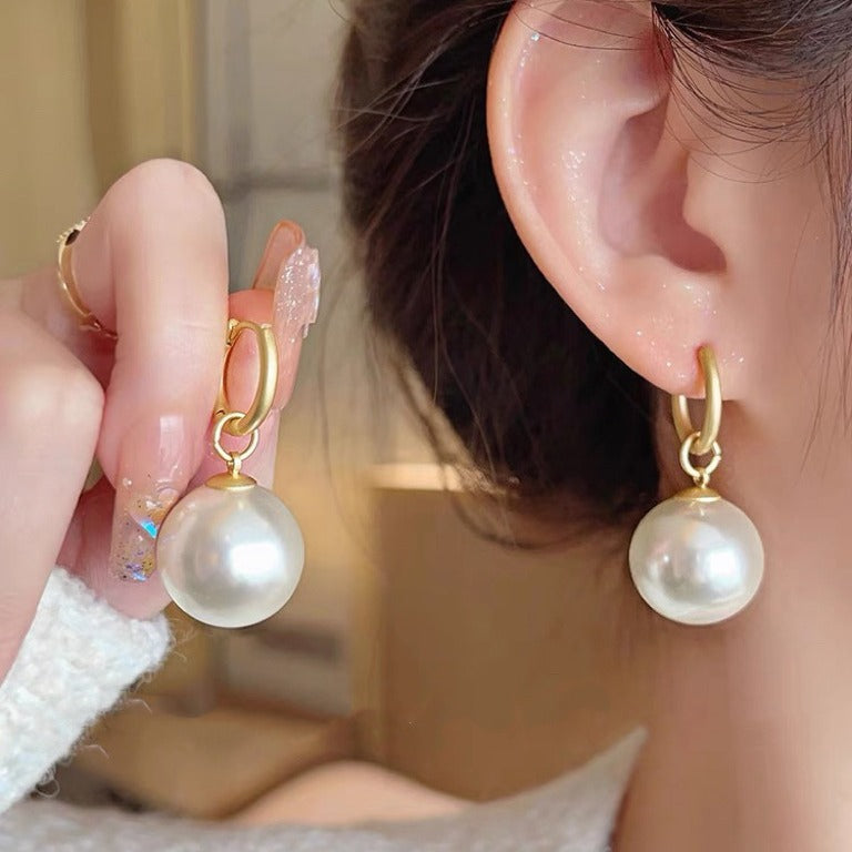 Women's Light Luxury Minority Elegant Big Pearl Titanium Steel Gold Earrings