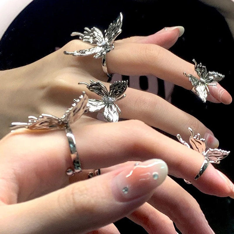 Women's Liquefied Butterfly Opening Niche Design Pleated Cold Wind Dark Rings