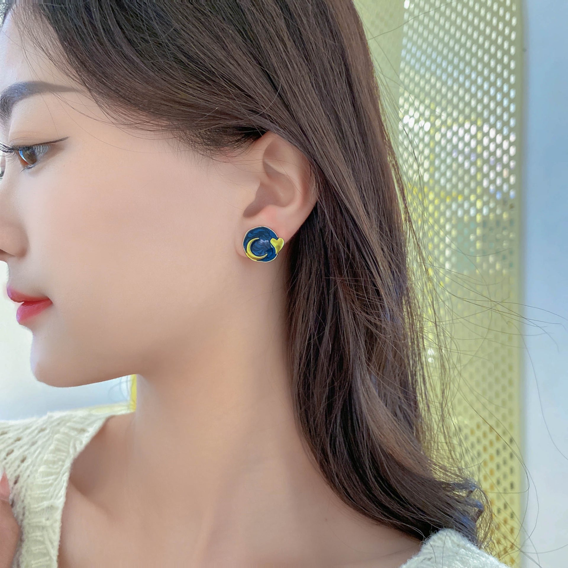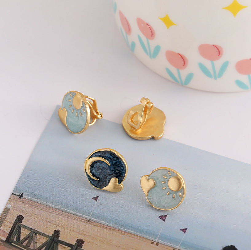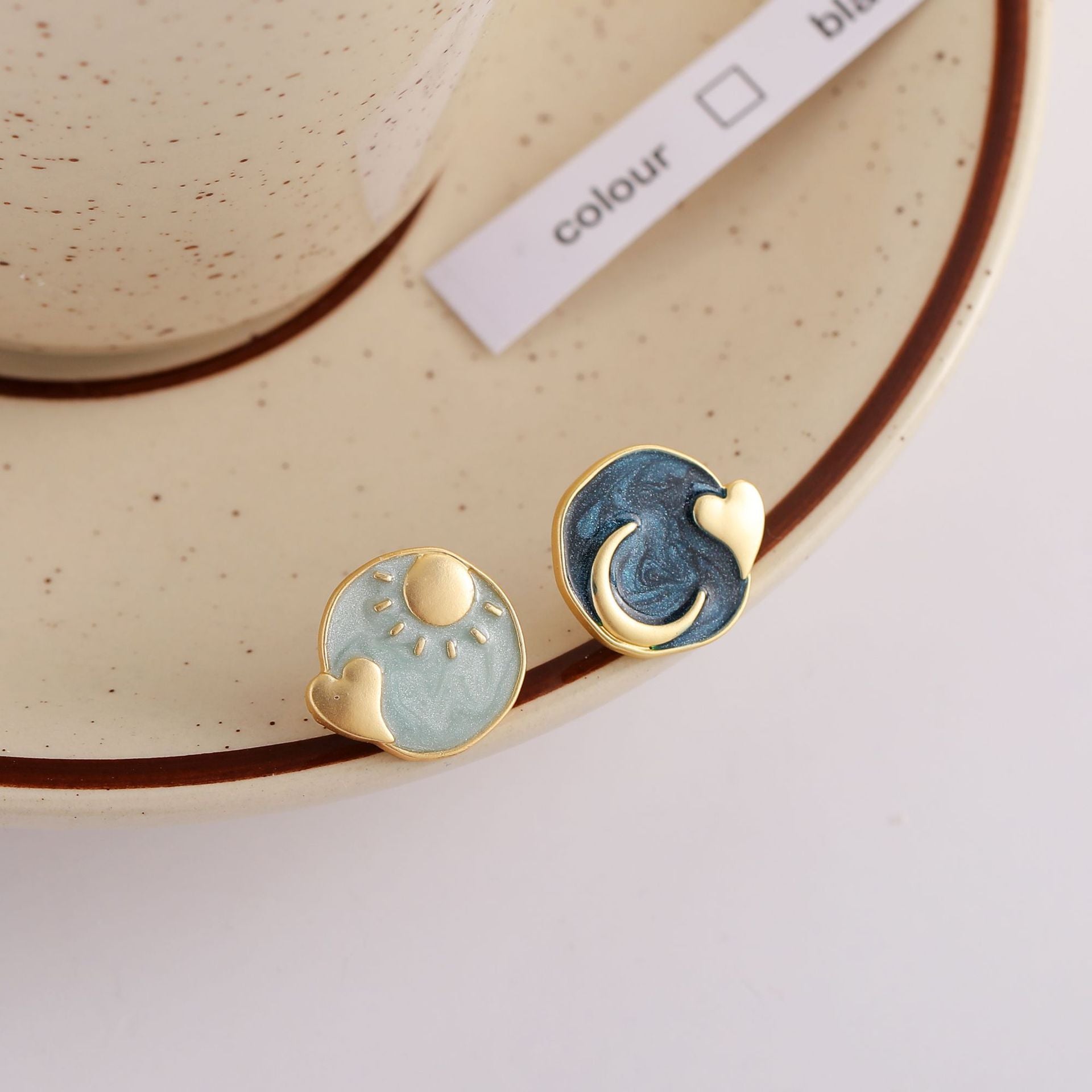 Women's Love Sun Moon Sier Needle Cute Earrings