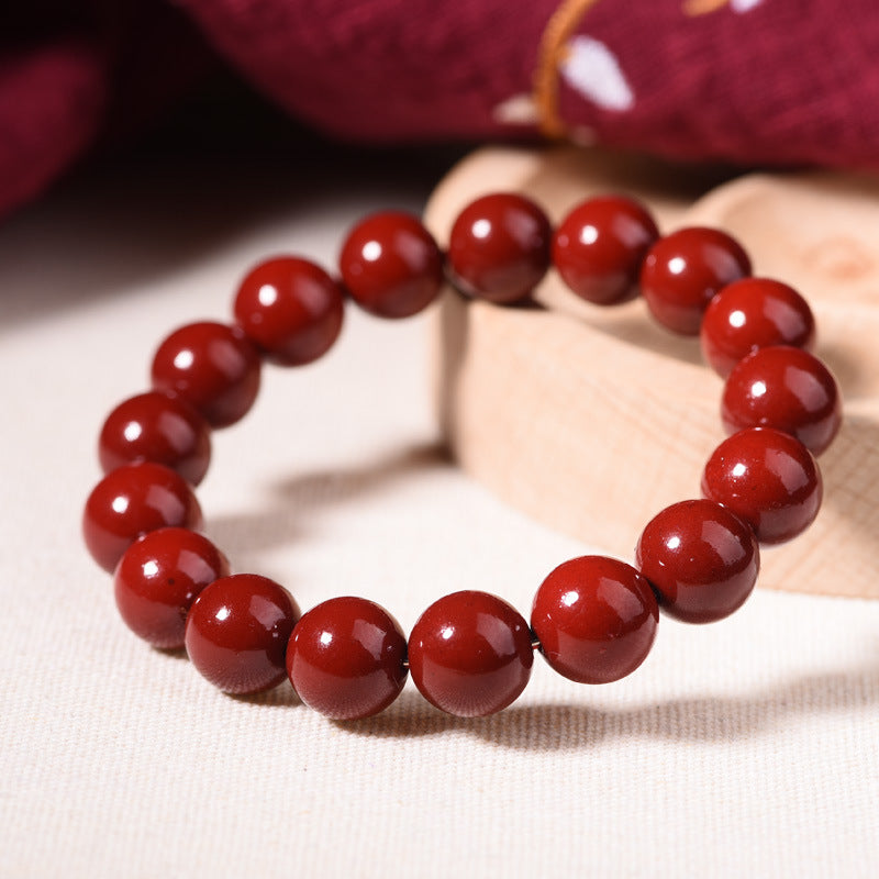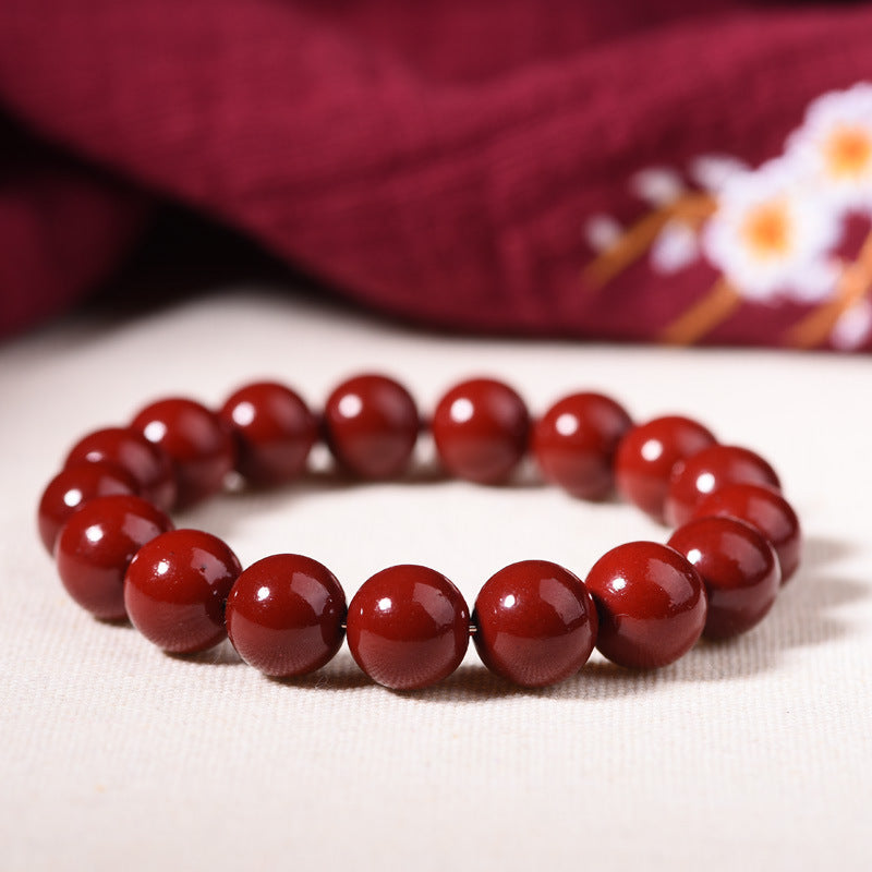 Women's & Men's Cinnabar Round Beads Chinese Style Traditional Bracelets