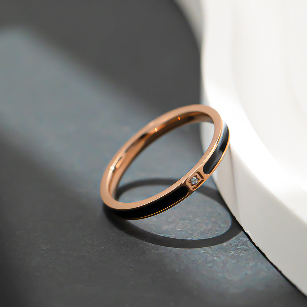 Women's & Men's Diamond Titanium Steel Fashion Simple Rose Rings