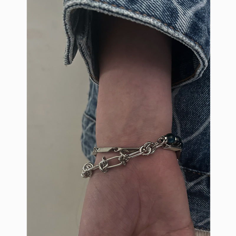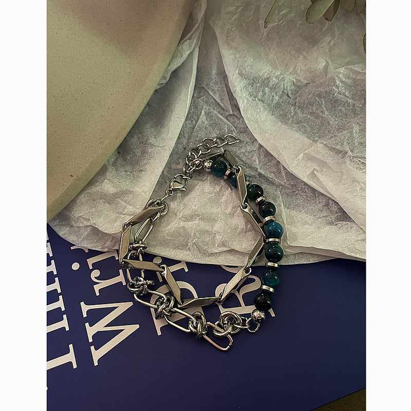 Women's & Men's Fashion Retro Hip Hop Stitching Design Blue Bracelets