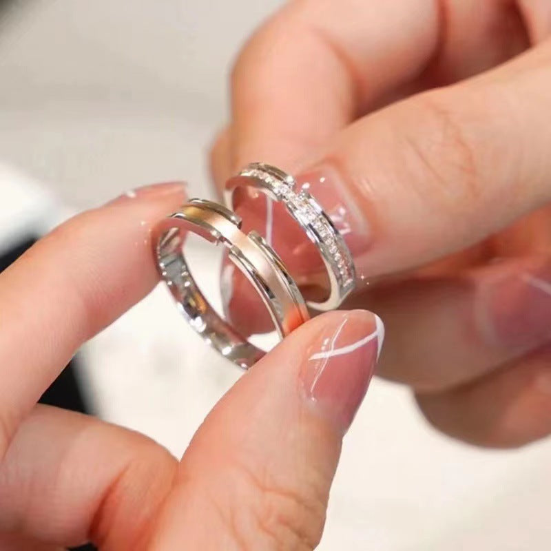 Women's & Men's Flash Sterling Couple White Dews One Pair Rings