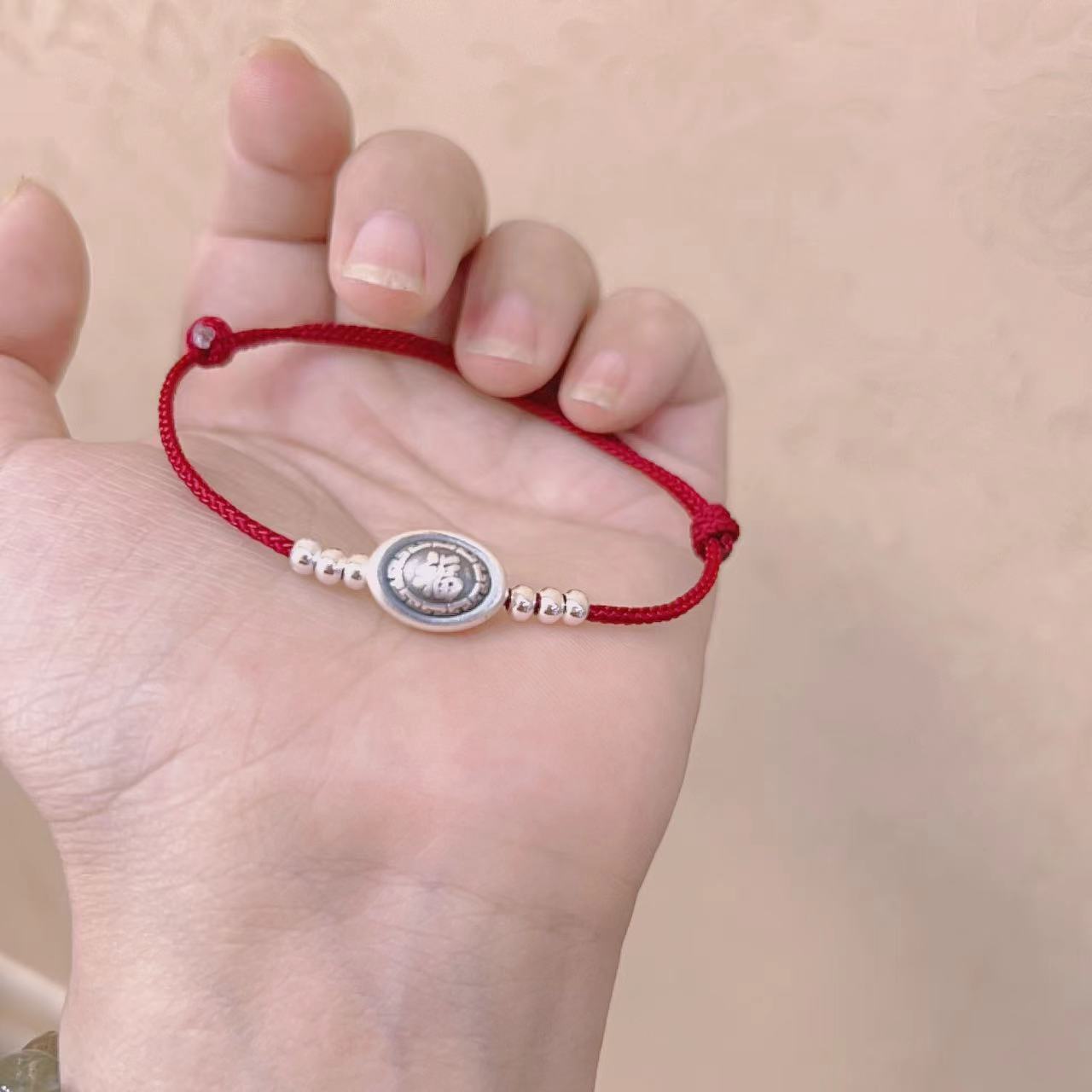 Women's & Men's Fu Character Ingot Couple Woven Red Bracelets