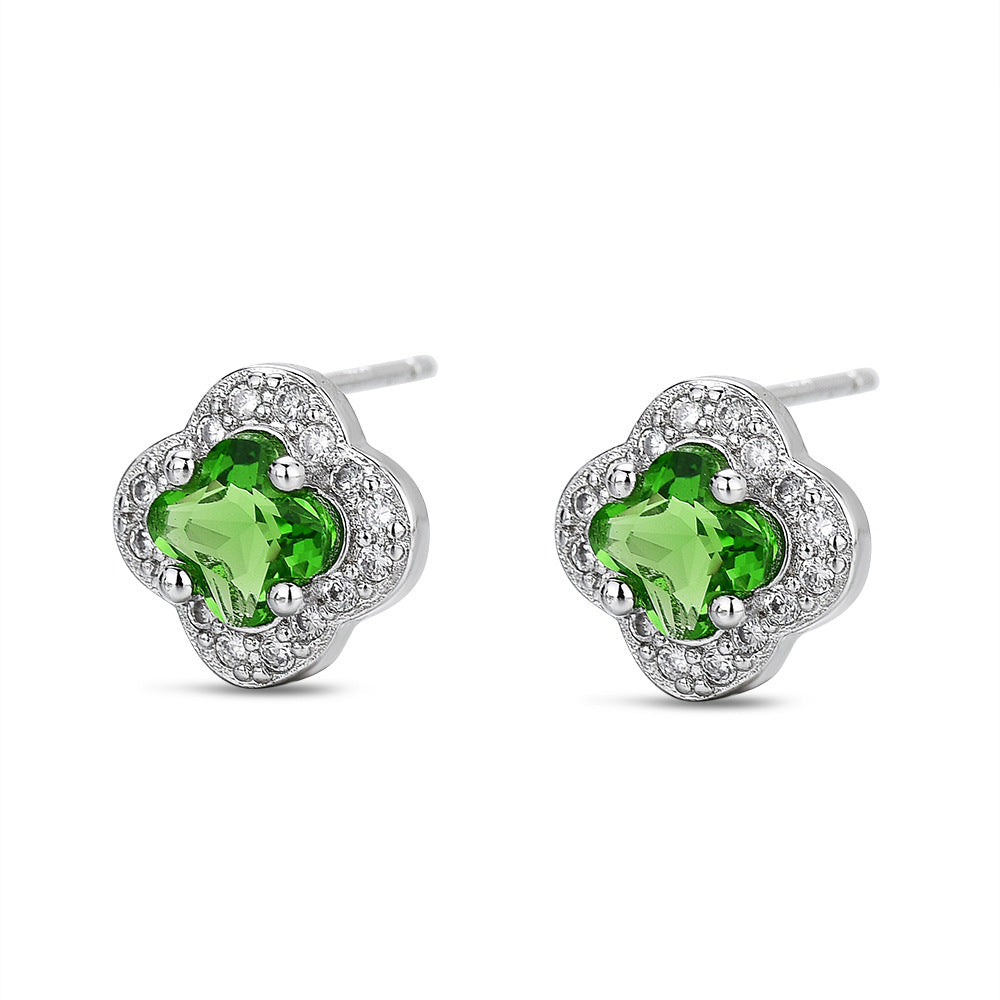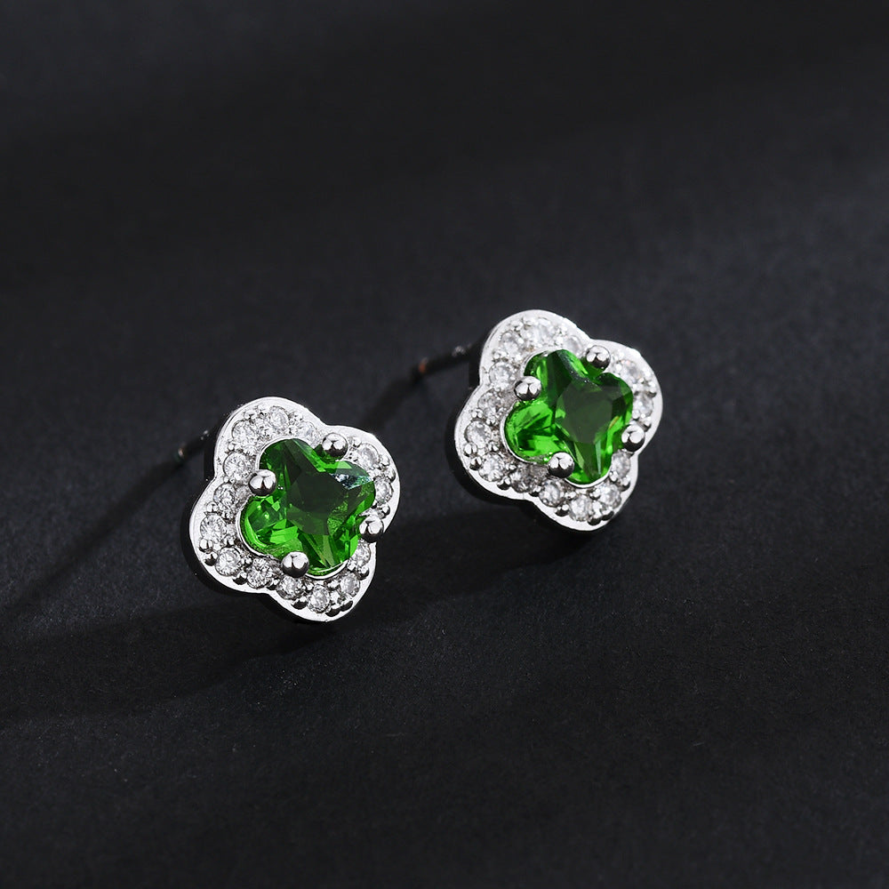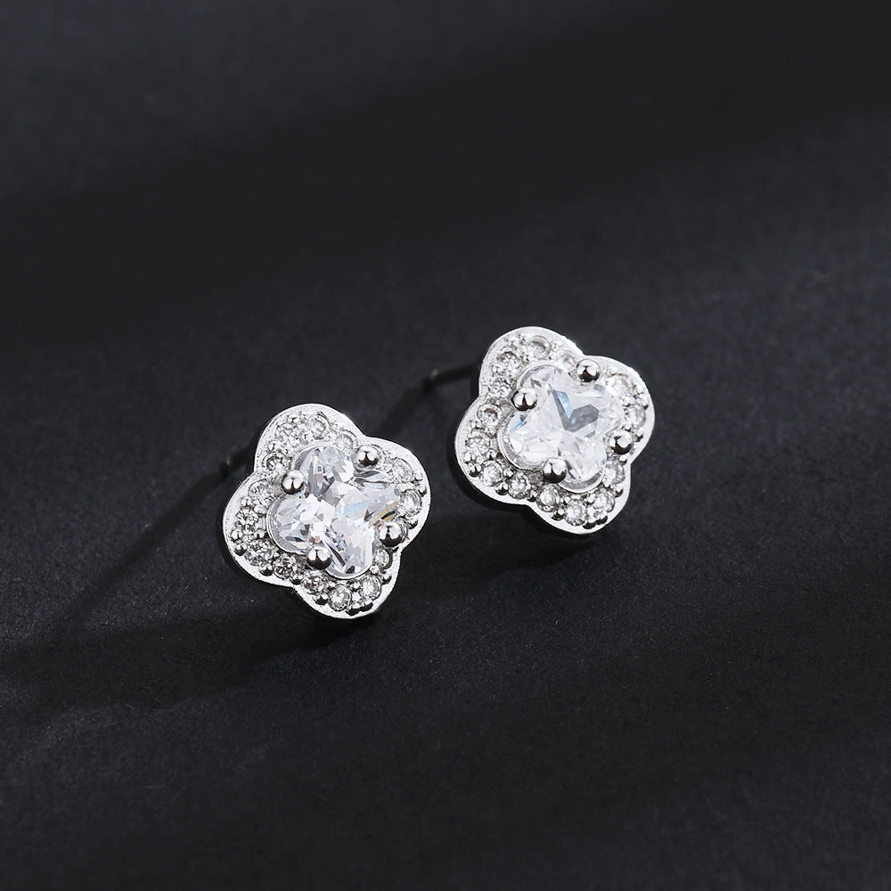 Women's & Men's Hip Hop Sterling Sier Needle Clover Earrings