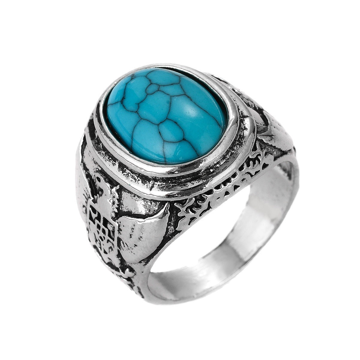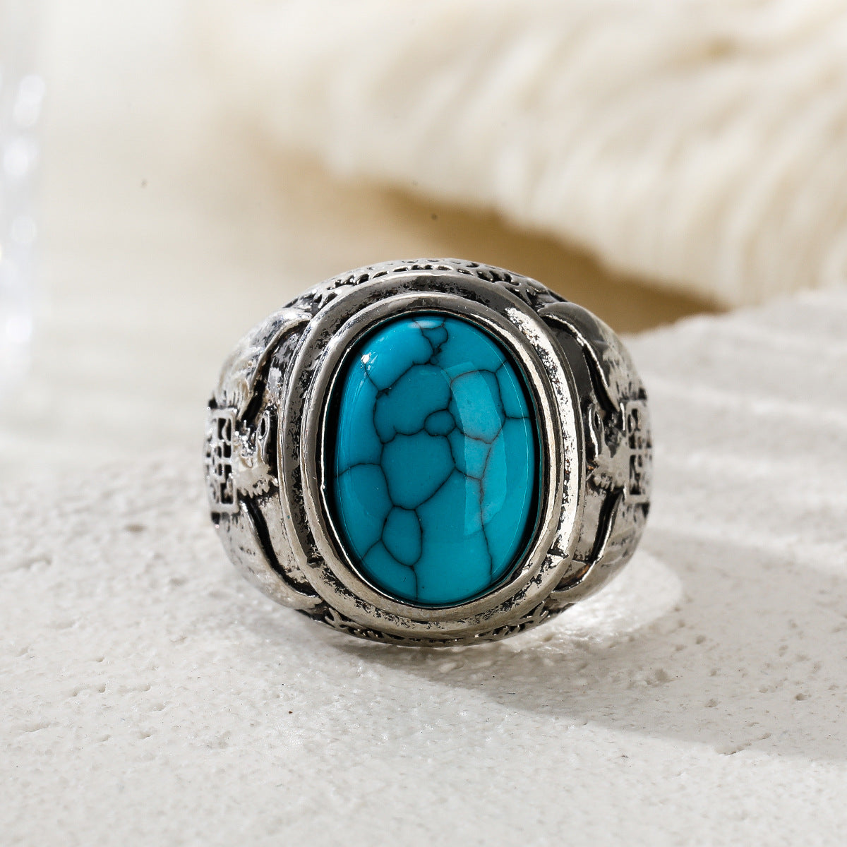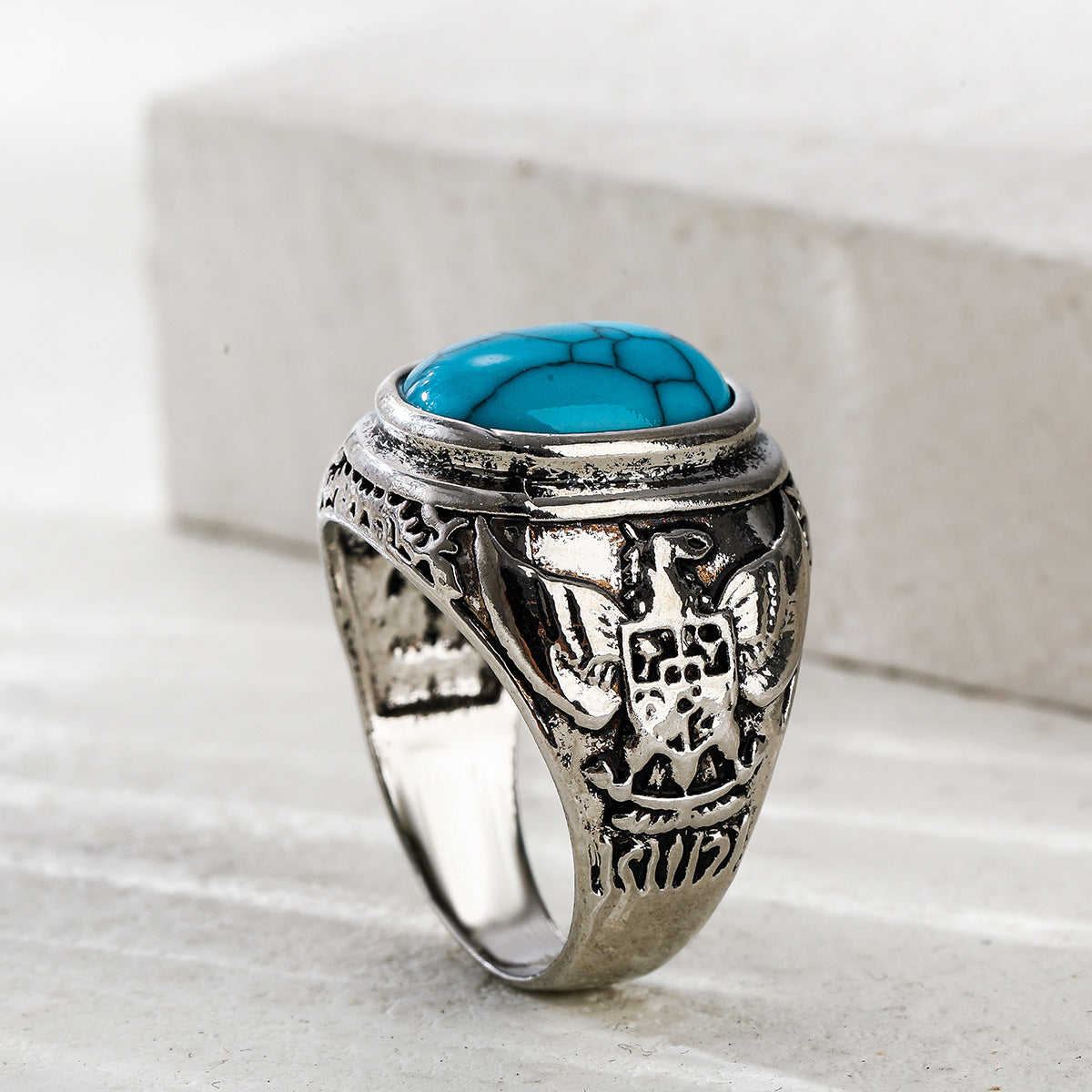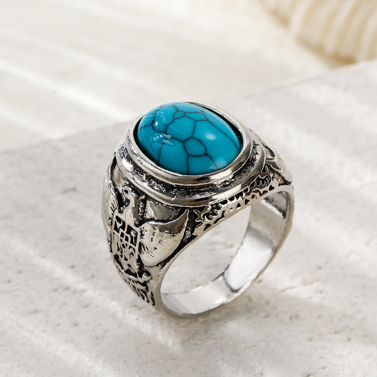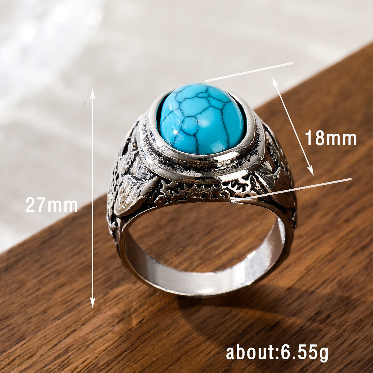 Women's & Men's Retro Imitation Blue Turquoise Gemstone For Rings