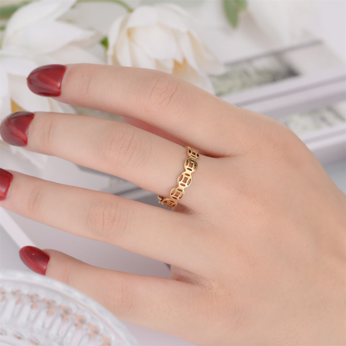 Women's & Men's Retro Titanium Steel Copper Coin Stainless Lucky Money Rings