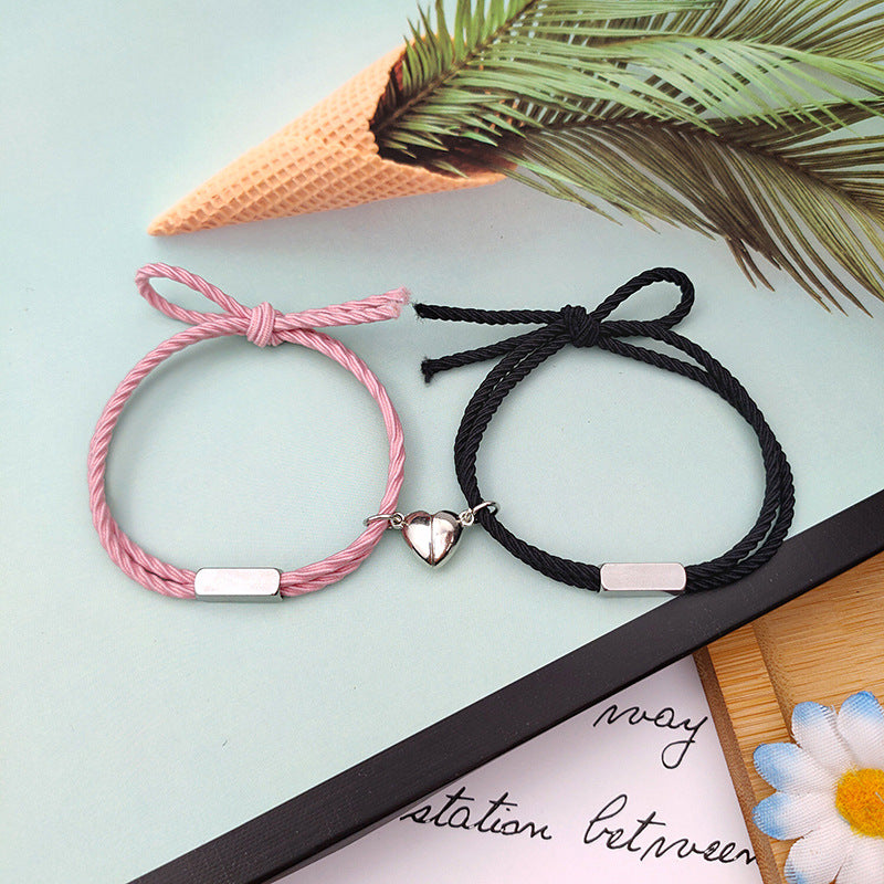 Women's & Men's Rope Stainless Steel Alloy Love Magnet Suction Couple Pair Bracelets