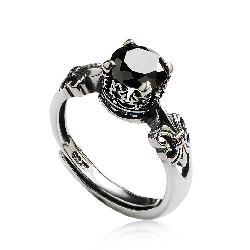 Women's & Men's Sier Natural Black Agate Open For Fashion Rings