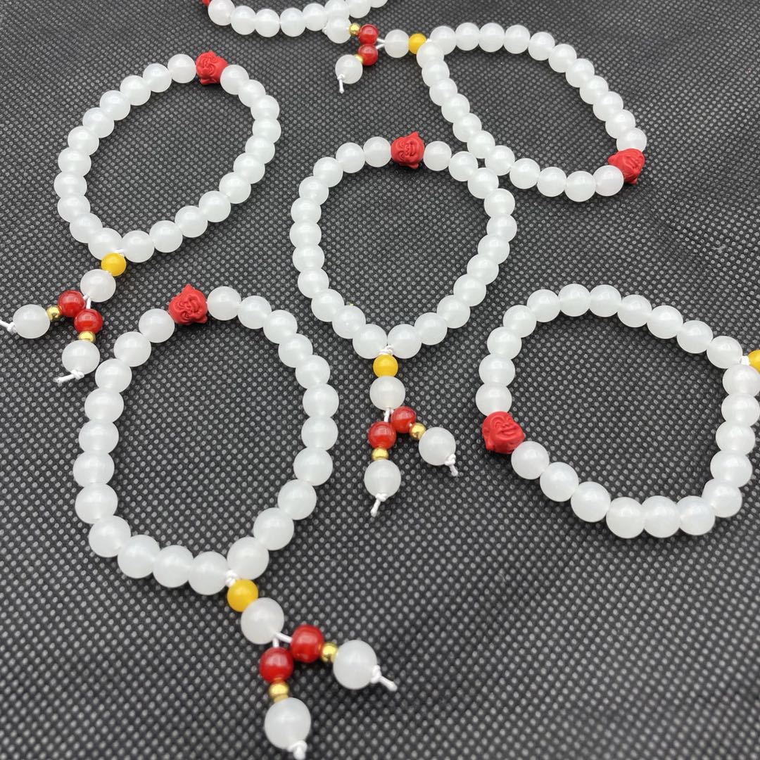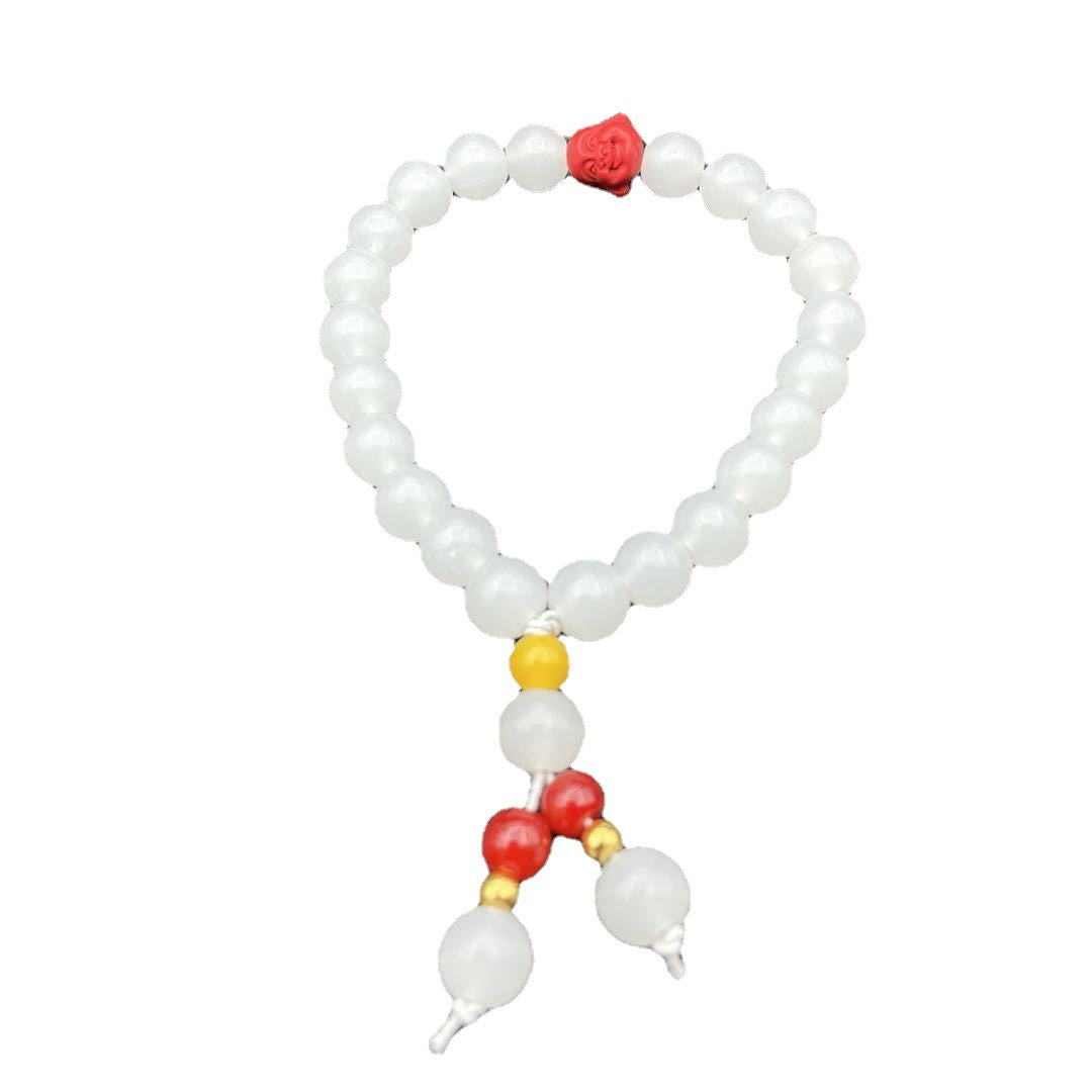 Women's & Men's Suet Round Beads Cinnabar Buddha Head Bracelets