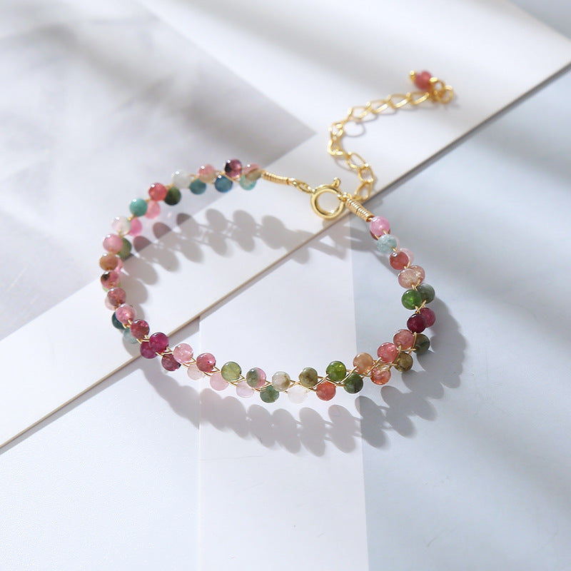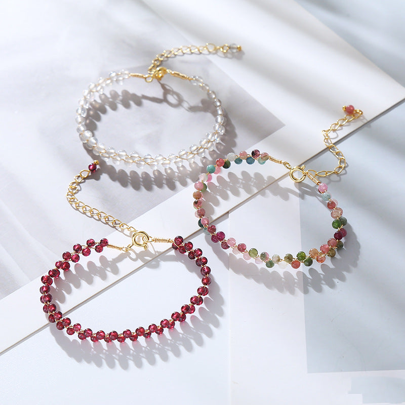 Women's Mori Style Hand-woven Garnet Tourmaline Moonstone Bracelets
