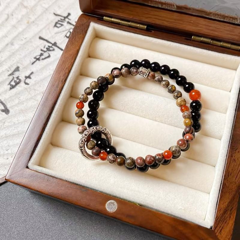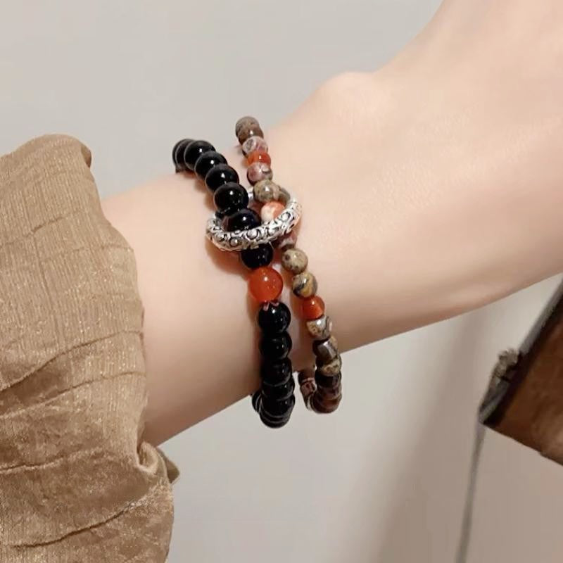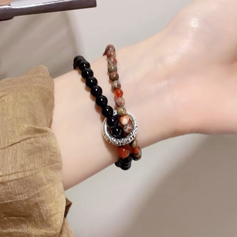 Women's National Style Peace Buckle Beaded Natural Bracelets