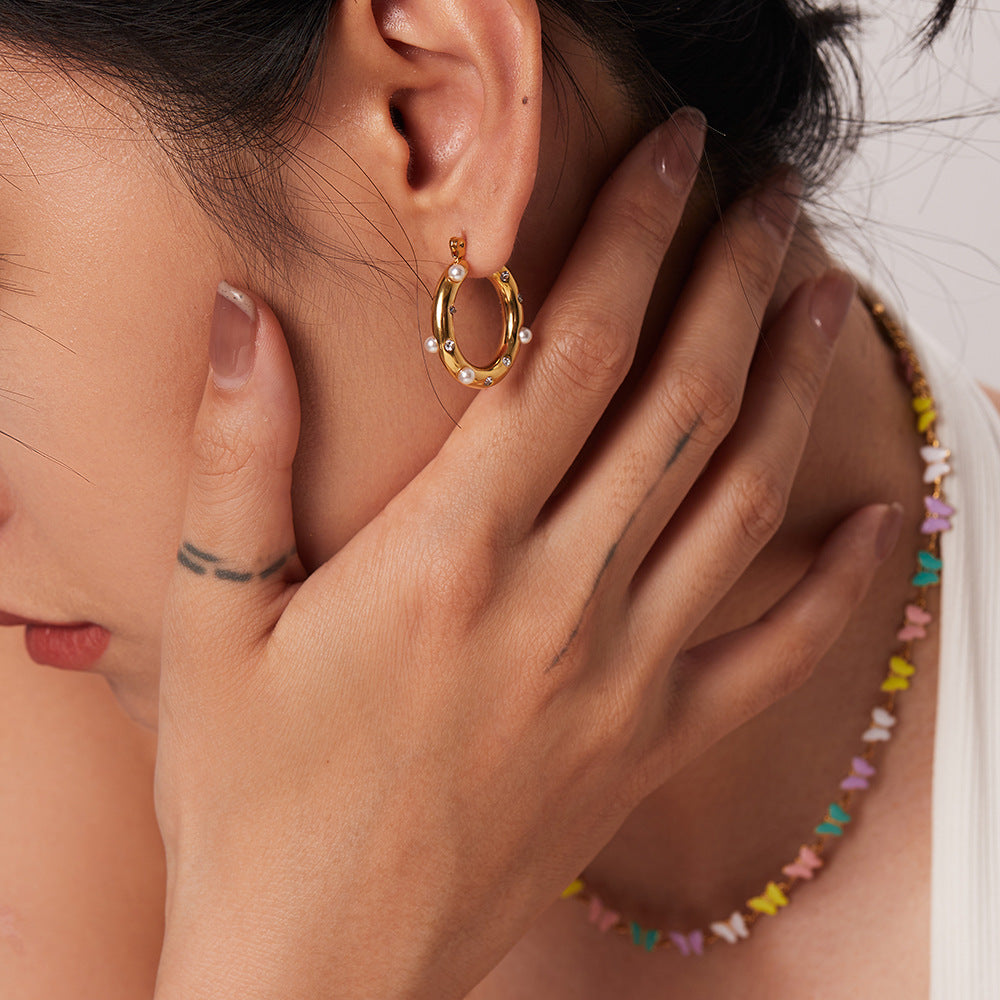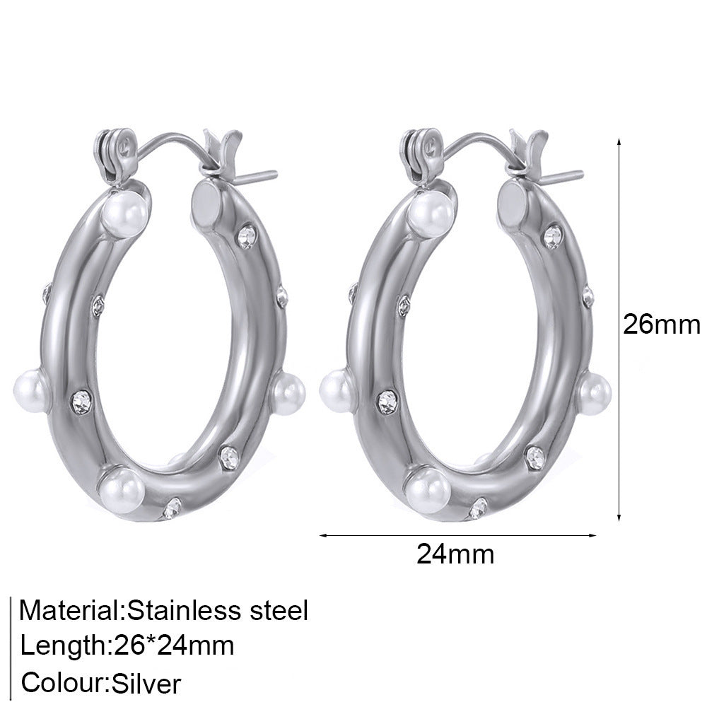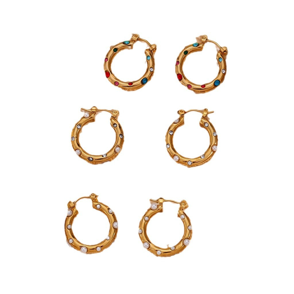 Women's Personalized Circle Stainless Steel Inlaid Colorful Crystals Earrings