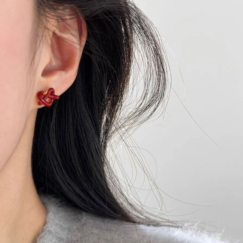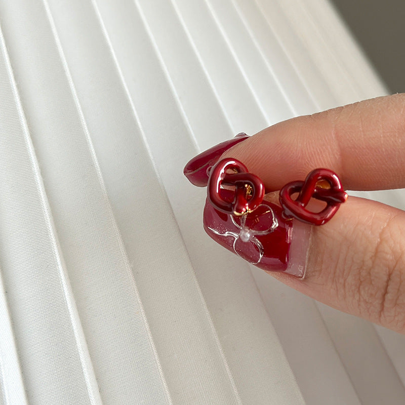 Color: Red Heart-Shaped Ear Studs, Bow Earrings