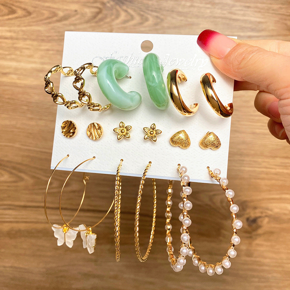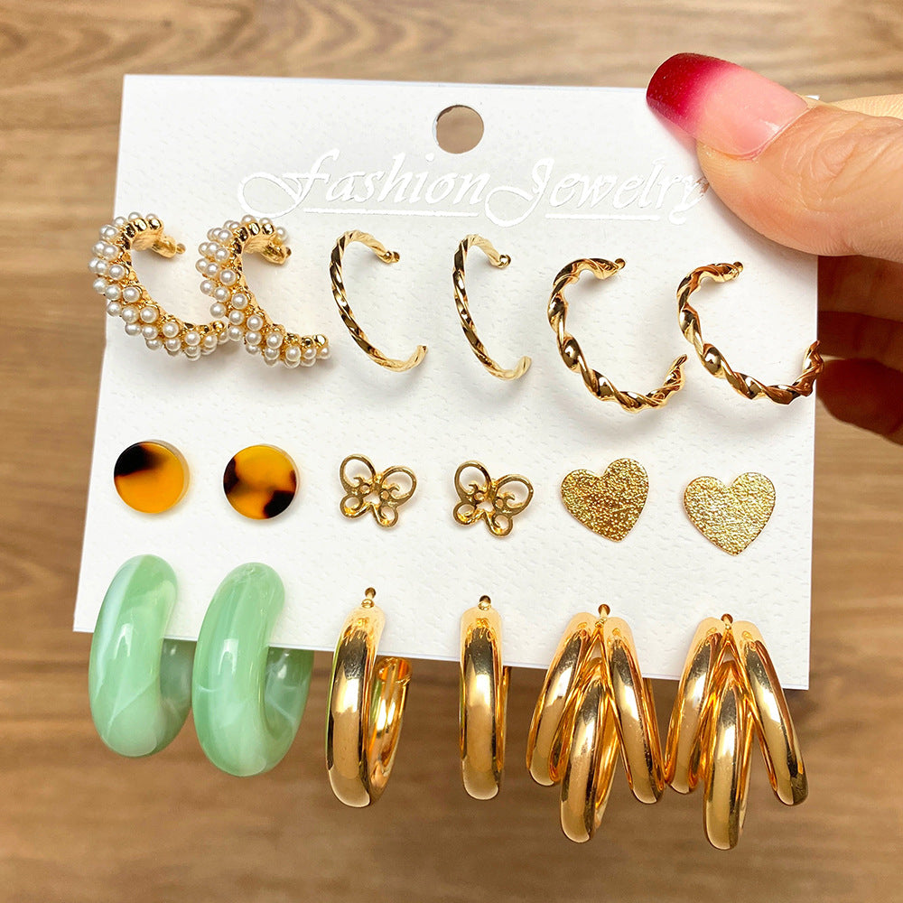 Women's Retro Geometric Suit High-grade Pearl Set Rings