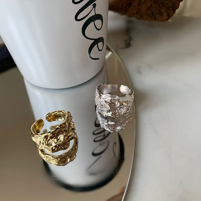 Women's Retro Open Pleated Irregular Concave Sterling Sier Rings