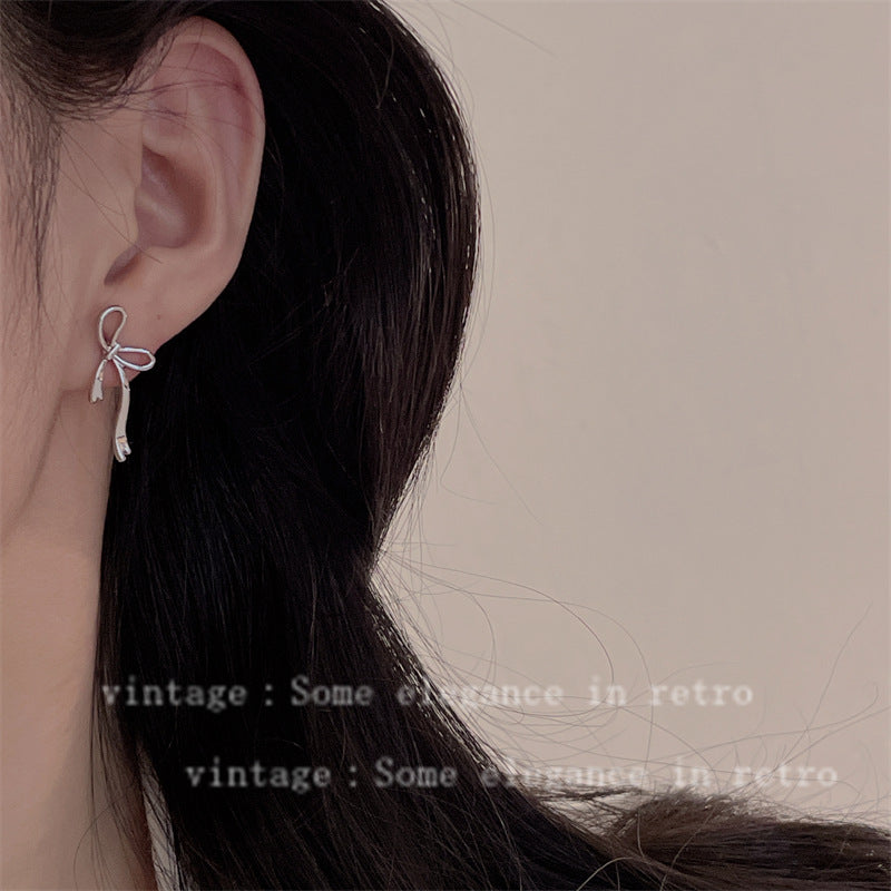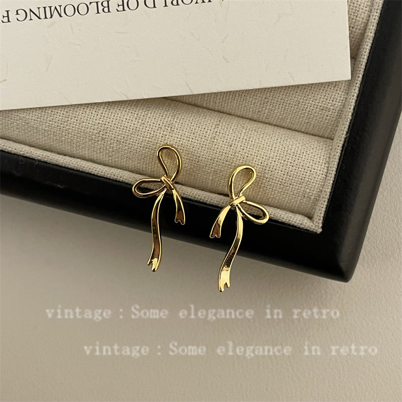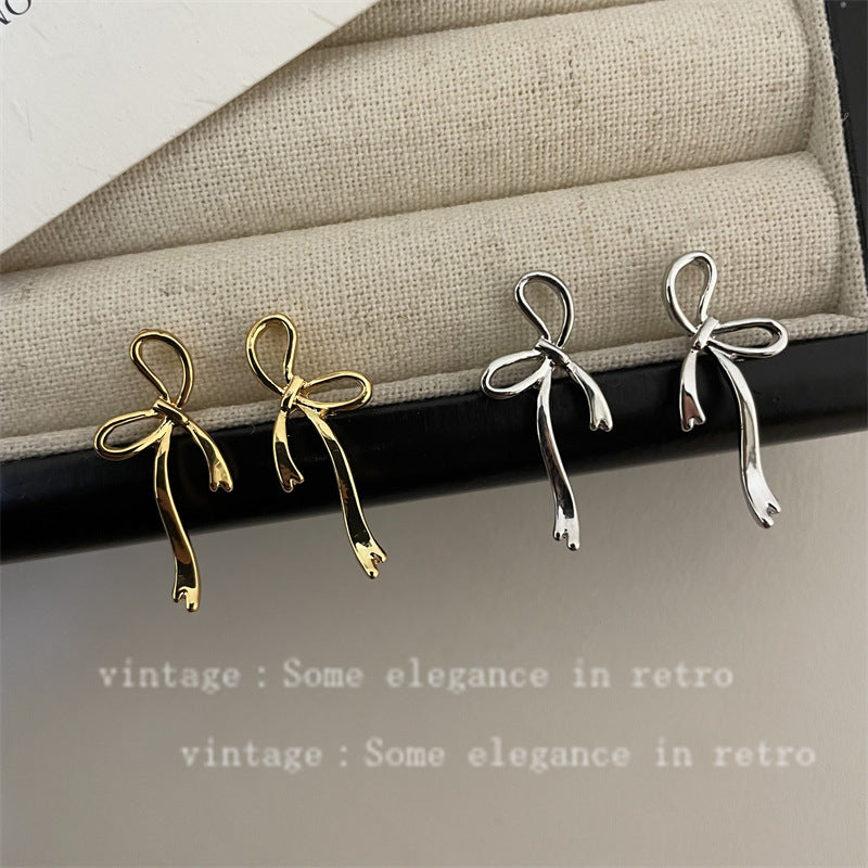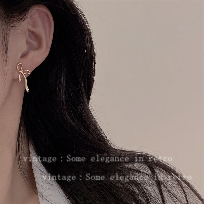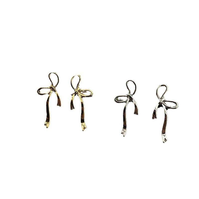 Women's Ribbon Metal Bow Fashion Simple Sweet Elegant Earrings