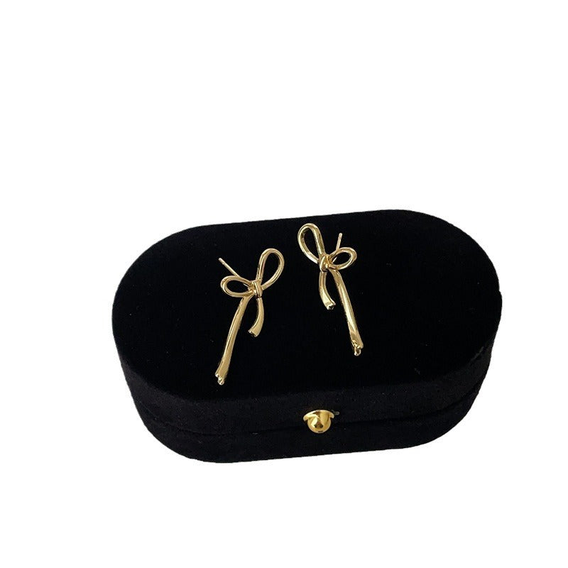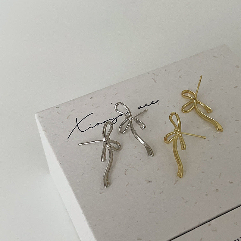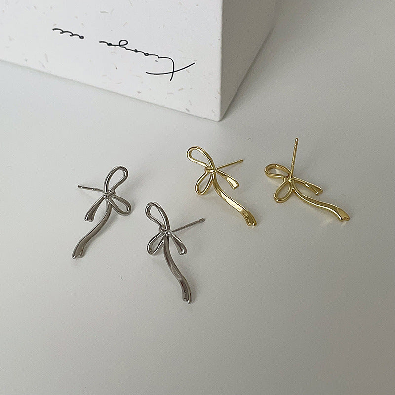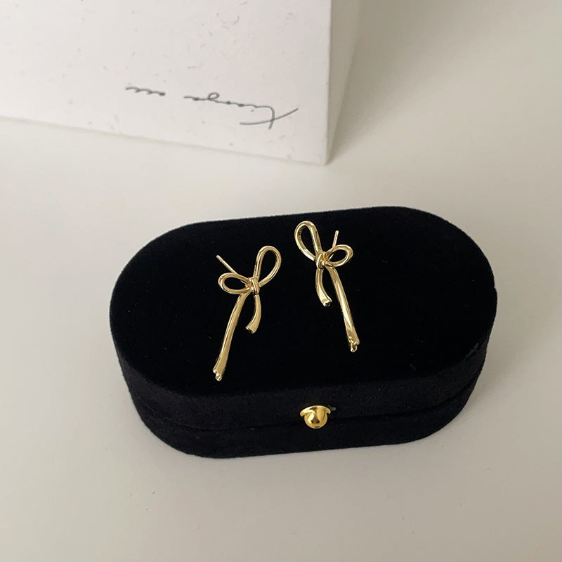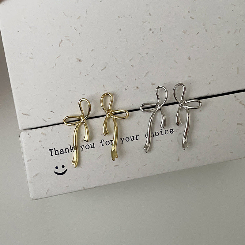 Women's Ribbon Metal Bow Simple Elegant Sweet Earrings