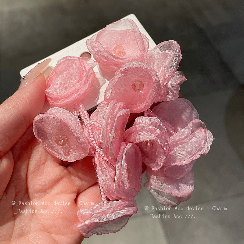 Women's Sier Needle Crystal Flowers Long Mori Earrings