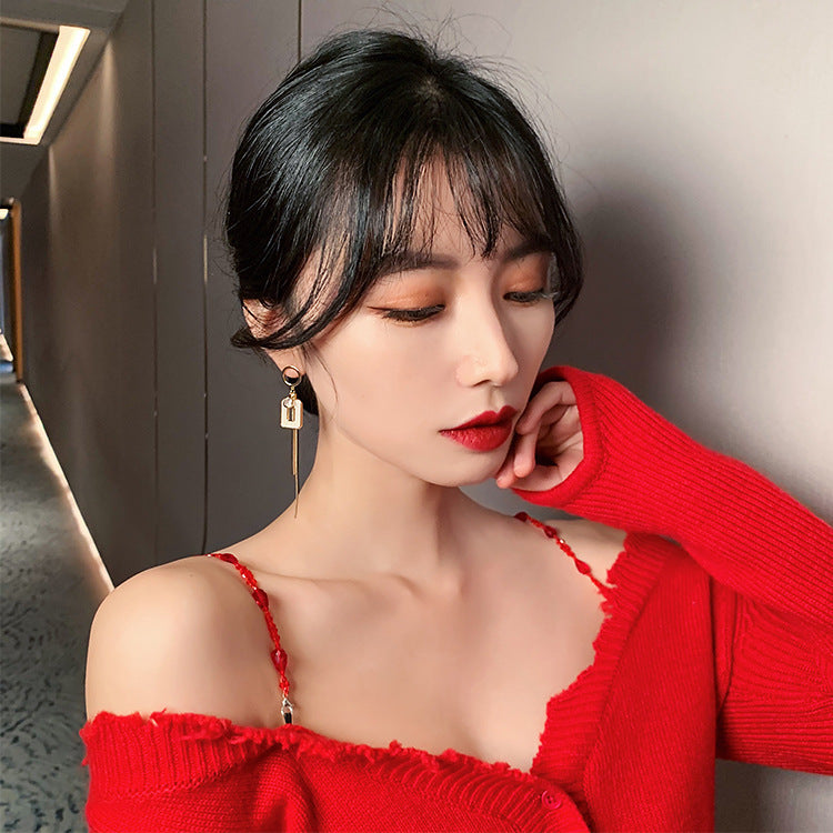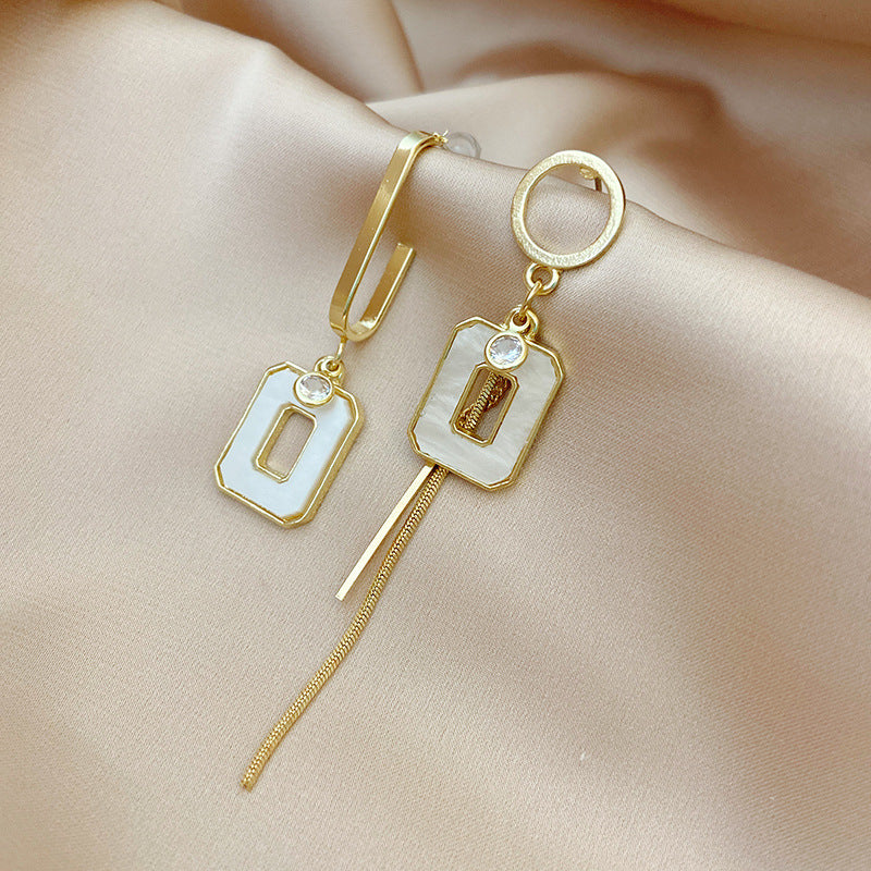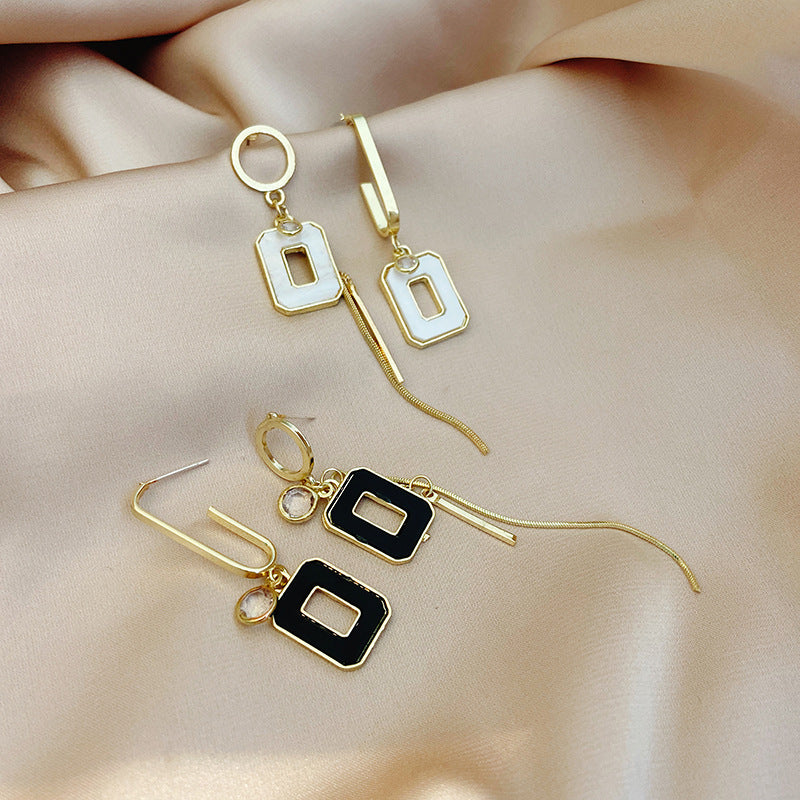 Women's Sier Needle Square Geometric Asymmetric Graceful Earrings