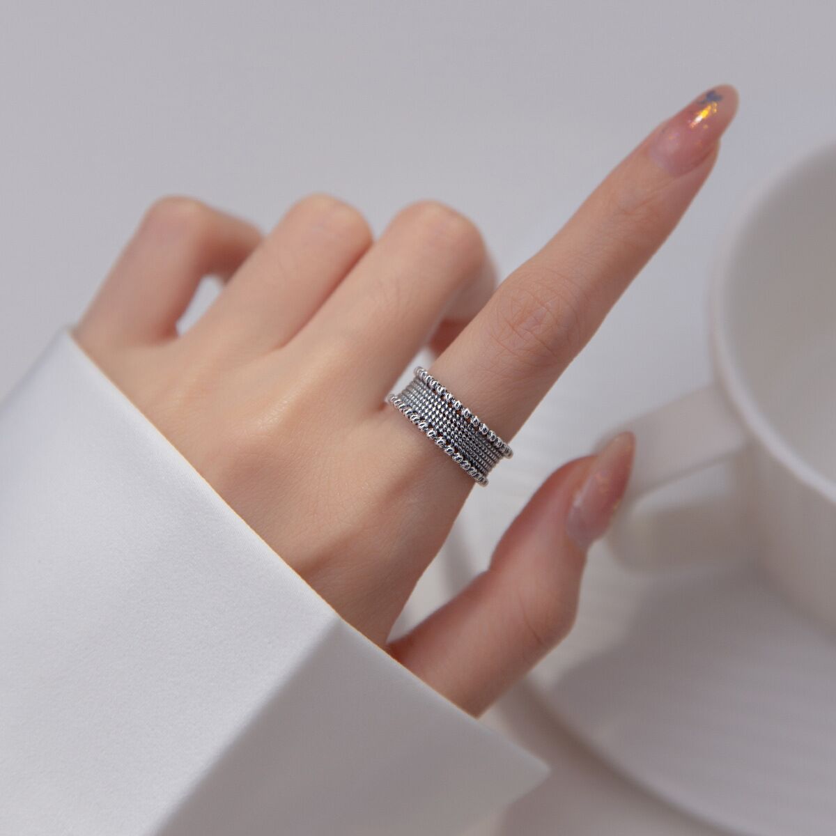Women's Sier Pattern Light Bead Fashion Unique Rings
