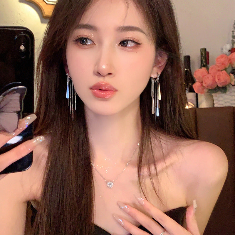Women's Sier Pin Long Tassel Niche Design Earrings