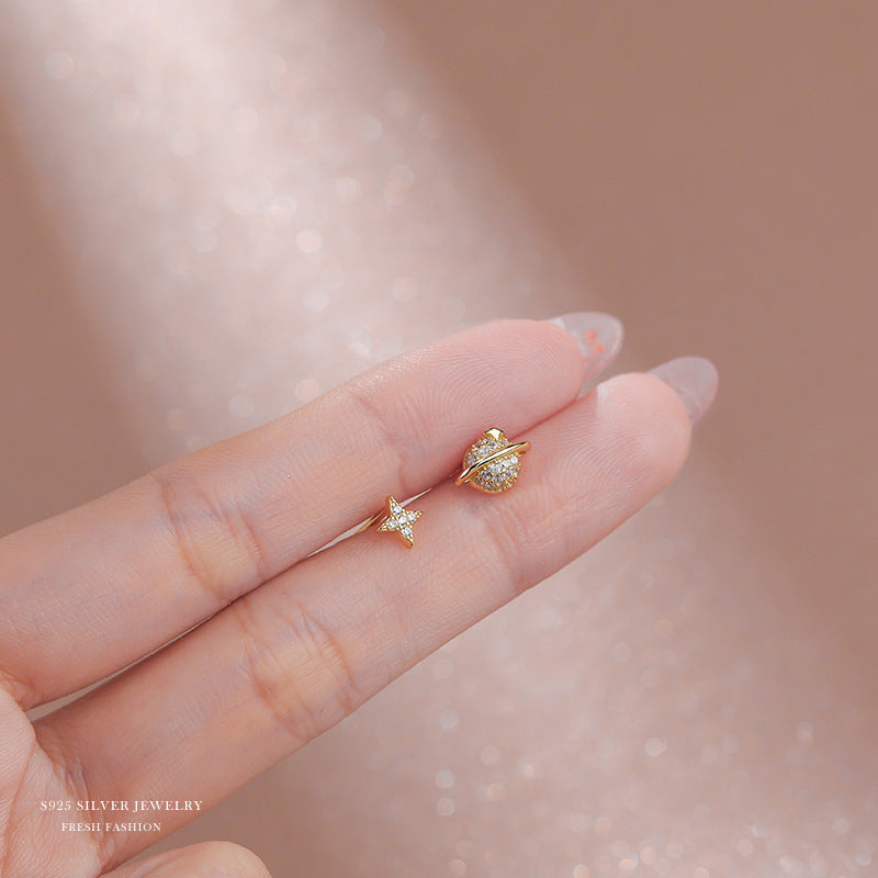 Women's Sier Planet Korean Simple Niche Small Earrings