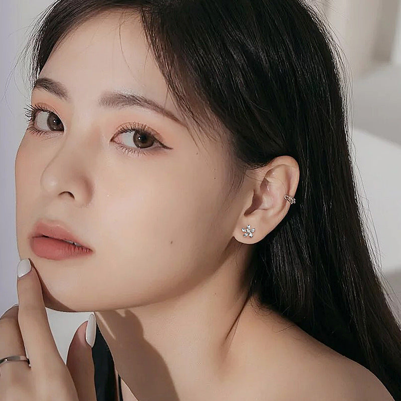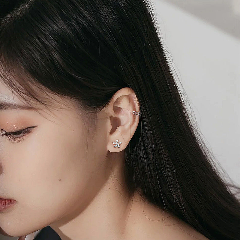 Women's Sier Screw Tightening Buckle Before Sleep Double-headed Trendy Earrings