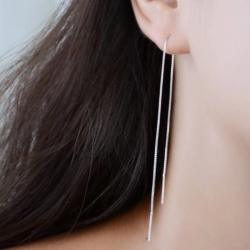 Women's Sier Simple Hanging Extra Long Ear Chain Earrings