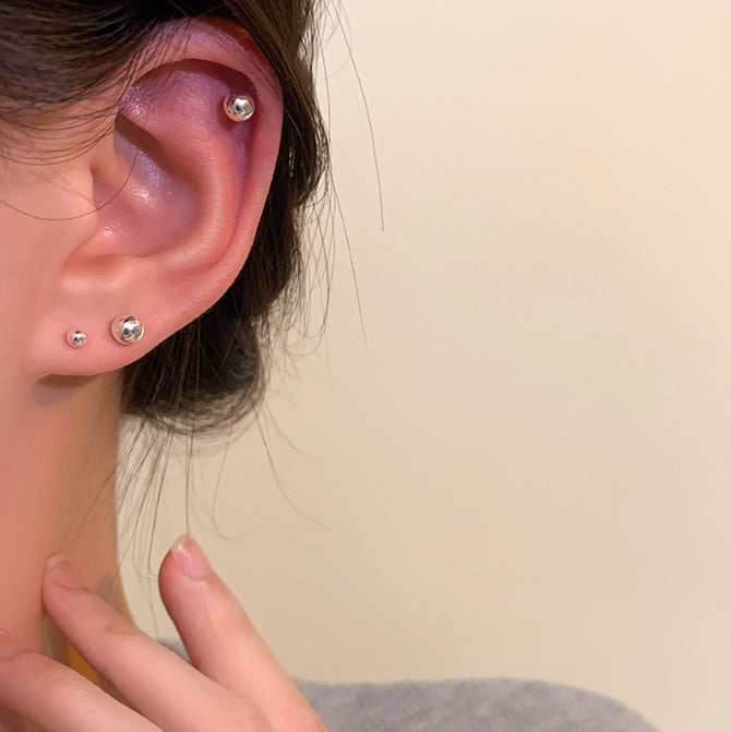 Women's Sier Small Simple Ear Beanie Bone Earrings